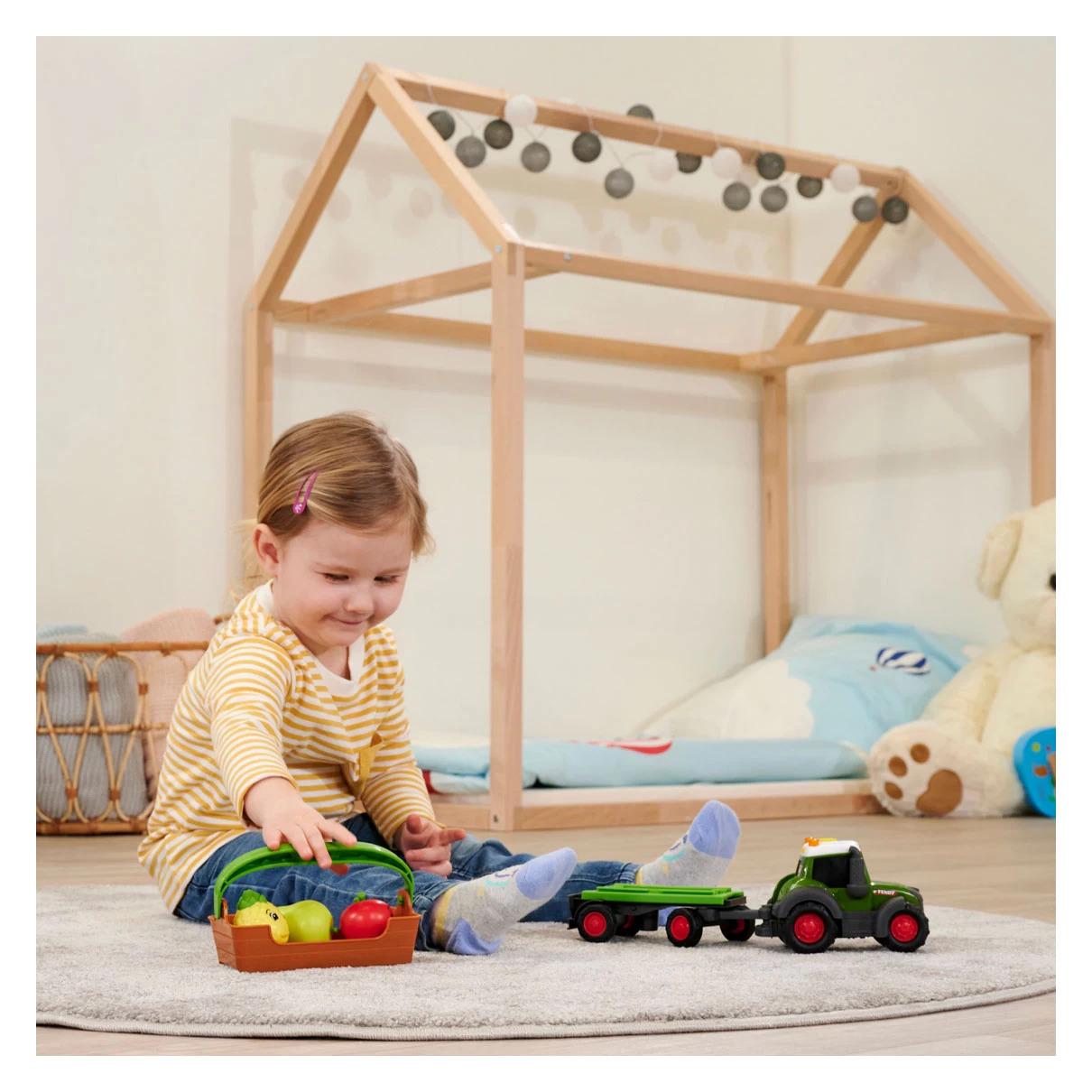 • Mein eigener Traktor – Mit dem 30 cm Anhänger kann die erste Ernte schnell vom Feld abtransportiert werden. Der Traktor hat ein offizielles Fendt-Kennzeichen und ist dem Original nachempfunden.