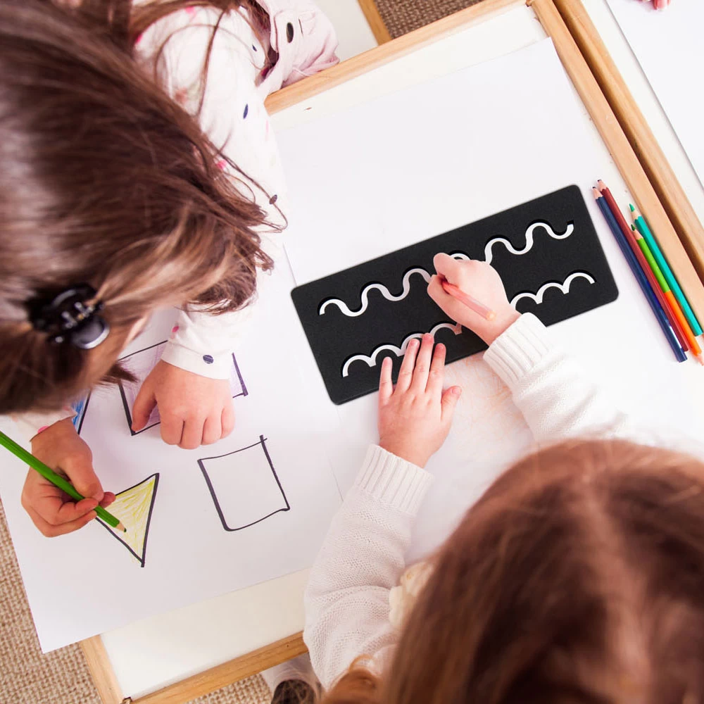 Mit einigen Grafikvorlagen macht das Zeichnen noch mehr Spaß. Diese Schablonen bestehen aus Schaumstoff, sodass Sie sie gut halten können. Legen Sie die Vorlage auf ein Blatt Papier und beginnen Sie mit dem Ausmalen. Platzieren Sie Ihren Bleistift zwischen der Öffnung und bewegen Sie ihn entlang der ausgeschnittenen Form. Das Set besteht aus vier Schablonen, die jeweils unterschiedliche Formen mit einer Linie als Basis haben. Eigenschaften • Geeignet zum Zeichnen mit Bleistift, Kugelschreiber, Marker, Farbe etc. • Fördert Feinmotorik, Konzentration und Kreativität • Muster kennen lernen und anfertigen • Geeignet ab 3 Jahren