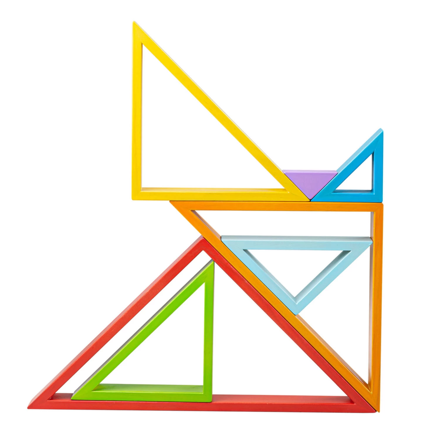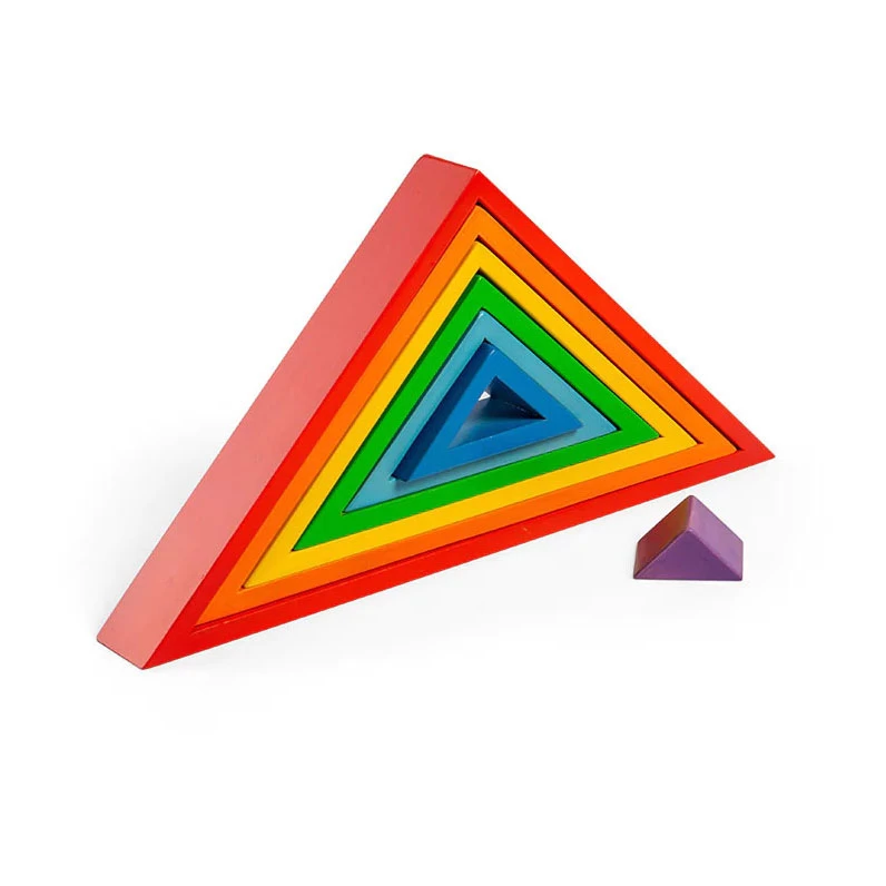 Stapeln, bauen und spielen Sie mit diesen regenbogenfarbenen Stapelspielzeugdreiecken aus Holz. Ohne Regeln oder Richtlinien ist dies das perfekte Montessori-Spielzeug. Kinderzimmerdeko und Spielzeug in einem. Kleine Hände können verschiedene Formen und Gegenstände zusammenstellen und dabei alles über die verschiedenen Größen und Farben der Dreiecke lernen. Sobald die Spielzeit vorbei ist, eignet sich dieses stapelbare Spielzeugset hervorragend als Dekoration für das Schlafzimmer oder Kinderzimmer. Artikeldetails Aus Massivholz gefertigt und mit ungiftiger Farbe gebeizt. Entwickelt Kreativität, Beweglichkeit und räumliches Vorstellungsvermögen. Hergestellt aus hochwertigen, verantwortungsvollen Materialien. Entspricht den aktuellen europäischen Sicherheitsstandards. Eigenschaften: – 7 regenbogenfarbene Dreiecke. – Aus Massivholz gefertigt und mit ungiftiger Farbe gefärbt. – Abmessungen: 4,9 cm L x 31 cm H x 31 cm B. – Geeignet für Kinder ab 3 Jahren. Bigjigs Holzspielzeug Die ersten Bigjigs Spielzeuge wurden 1985 auf englischem Boden kunstvoll aus wunderschönem Holz hergestellt. Auch heute noch ist Holz das ultimative Material für Bigjigs Spielzeuge. Nach Jahren des Erwerbs von Wissen und Fähigkeiten ist ein würdiges Sortiment an Holzspielzeug aller Art entstanden. Entdecken Sie Holzeisenbahnschienen, Holzlebensmittel, Holzpuzzles und vieles mehr!