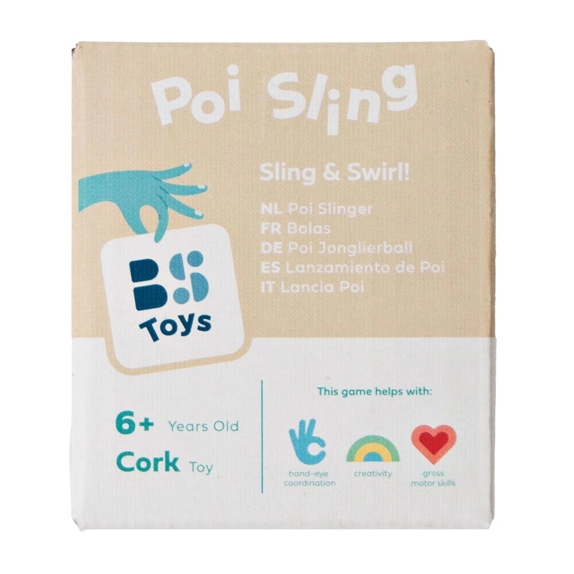 Bereit zu glänzen? Unsere tolle Poi-Schlinge wartet auf Sie! Drehen, drehen und tanzen Sie mit diesem einzigartigen Spielzeug, das Ihre motorischen Fähigkeiten auf die nächste Stufe hebt. Was lernt man aus diesem Spiel? • Grobmotorik • Hand-Auge-Koordination • Kreativität Eigenschaften • Material: Holz, Kork, Stoffbänder • Hergestellt aus 100 % FSC-zertifiziertem Holz • Maße: Kugel Ø 6 cm | Seil 41 cm • Mit 8 Bändern von 140 cm Länge • Empfohlenes Alter: 6+