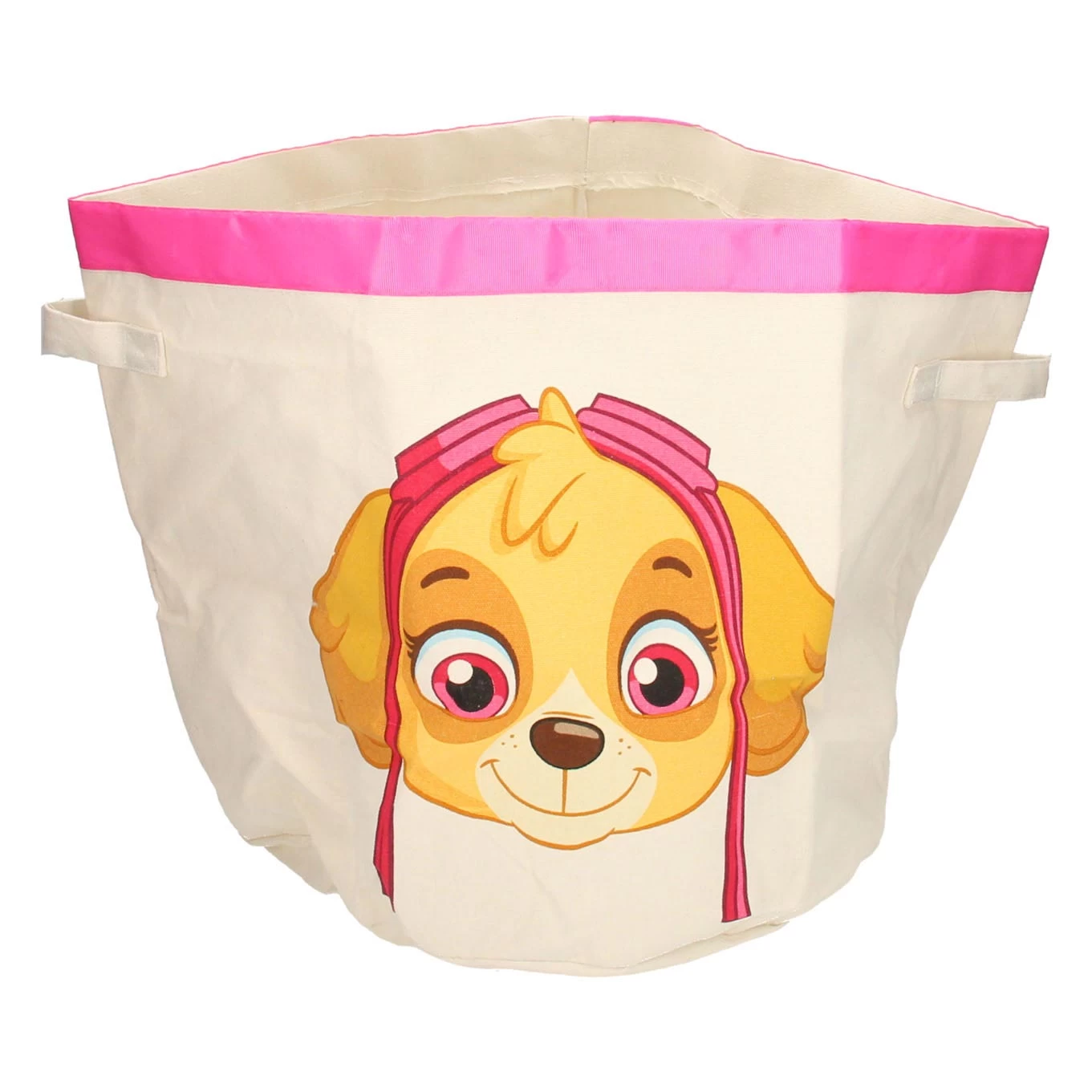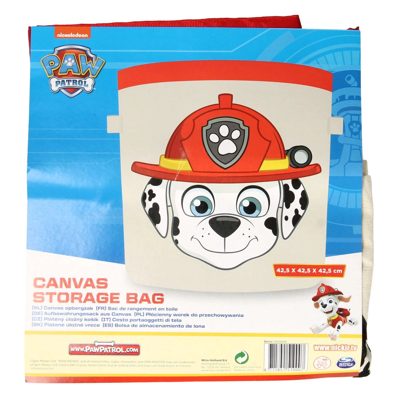 Suchen Sie einen schönen Aufbewahrungsort für all Ihre losen Spielsachen? Für PAW Patrol Fans müssen Sie nicht weiter suchen, denn diese Canvas-Aufbewahrungstasche ist mit einem coolen Aufdruck der Hundefreunde von PAW Patrol versehen. Chase, Marshall, Rubble, Everest und Skye werden abwechselnd oder zusammen auf der Vorderseite angezeigt. Verschiedene Versionen werden nach dem Zufallsprinzip zusammen geliefert. Abmessungen: 42,5 x 42,5 x 42,5 Zentimeter.