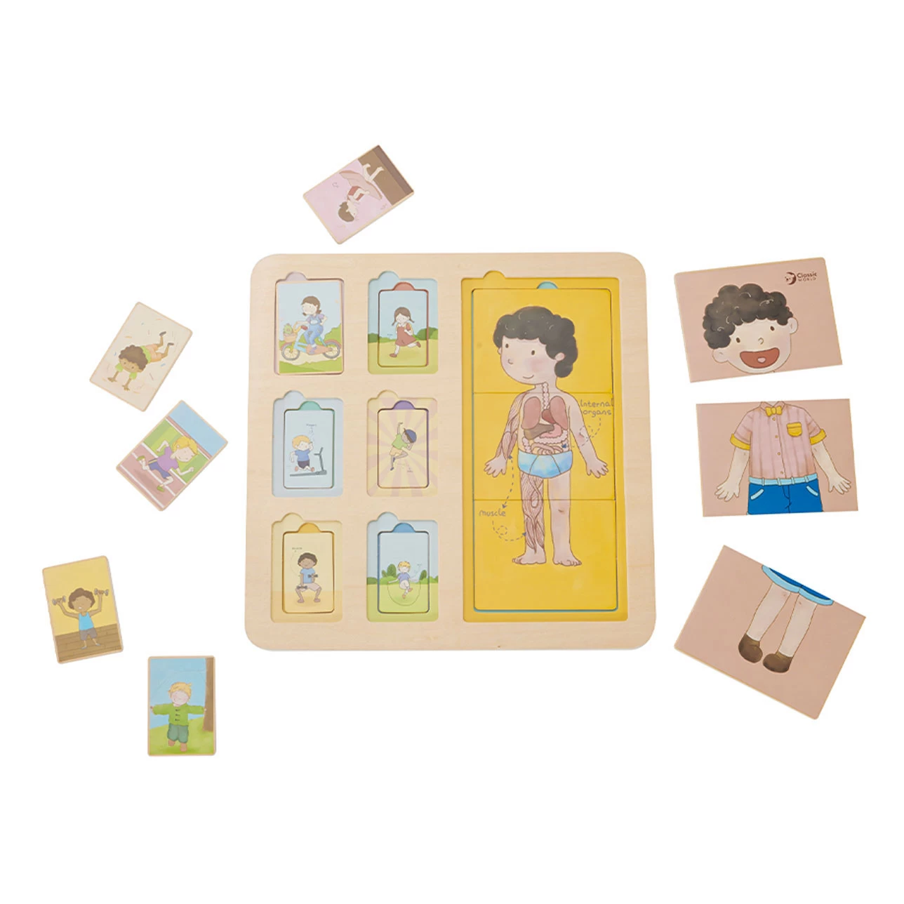 Wie gut kennen Sie den menschlichen Körper? Dieses 19-teilige Holzpuzzle für Kleinkinder von Classic World macht insgeheim Spaß für Jung und Alt. Das Puzzle besteht aus nicht weniger als drei Schichten: Muskeln, Organe und Knochen. Holzpuzzle für Kleinkinder Dieses originelle Holzpuzzle weckt die Neugier der Kinder. Was ist in meinem Magen? Was passiert, wenn ich umziehe? Anhand schöner und sportlicher Illustrationen erfährt Ihr Kind Schicht für Schicht, wie ein Körper funktioniert. Die kompakten Puzzleteile sind für kleine Kinder leicht zu halten. Aus robustem, nachhaltigem Holz gefertigt und mit kindersicherer Farbe behandelt. Geeignet für Kinder ab 1 Jahr (12 Monate).