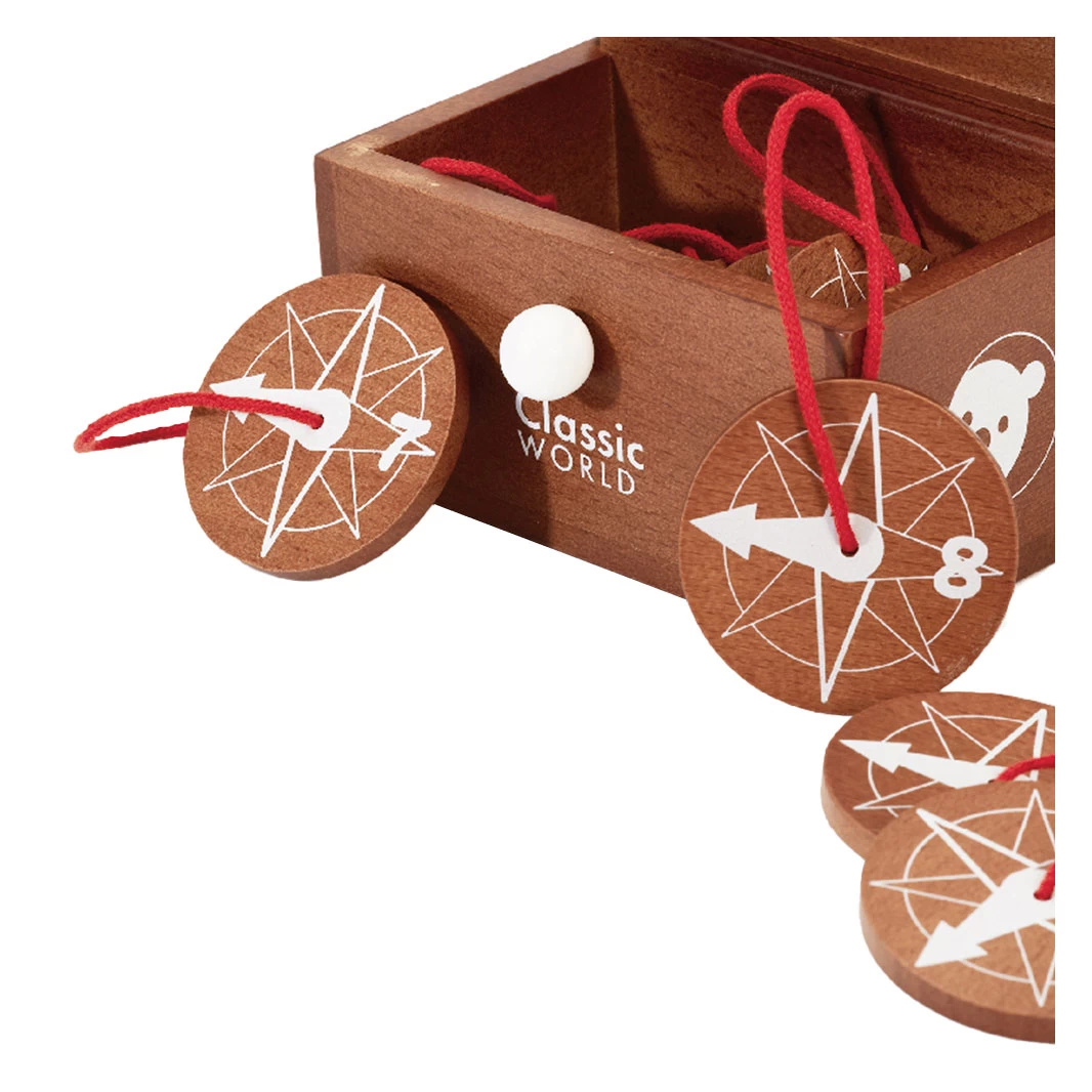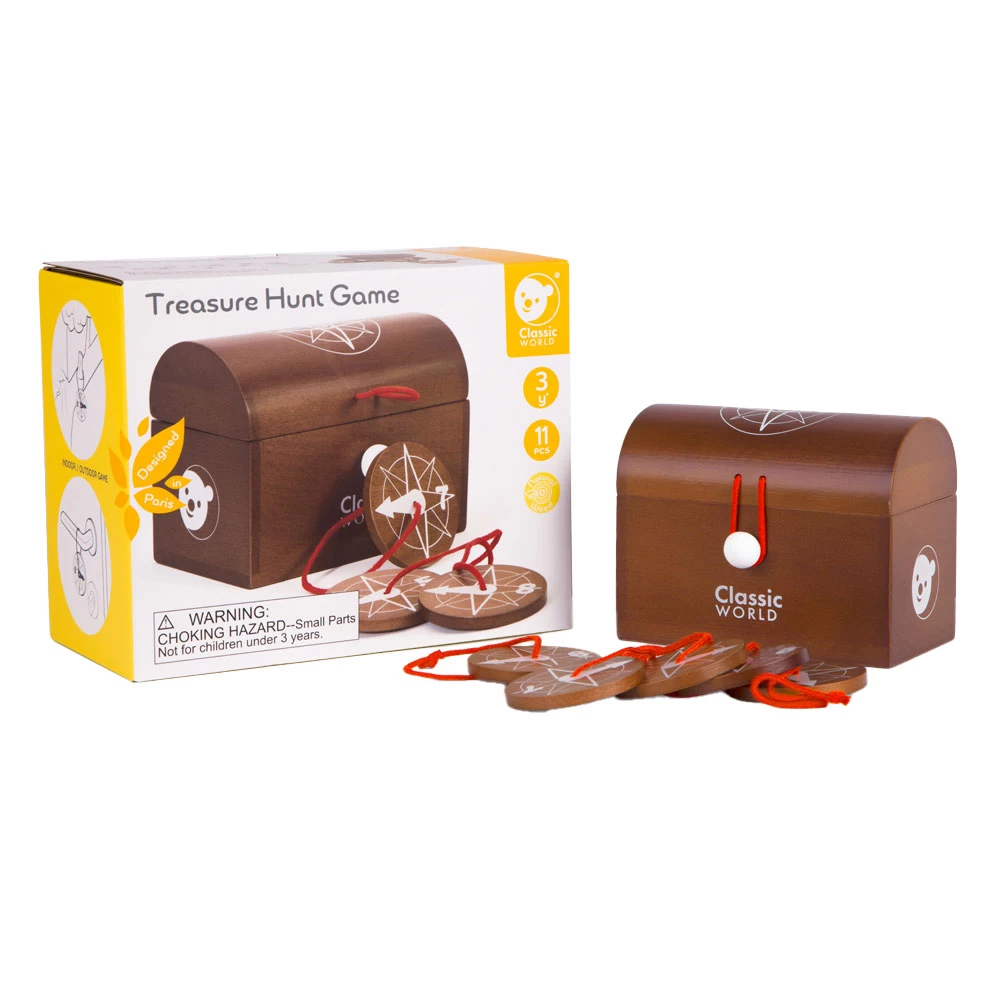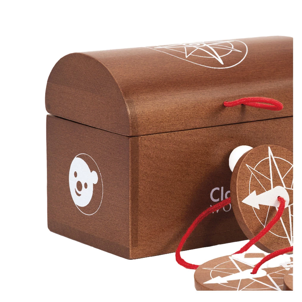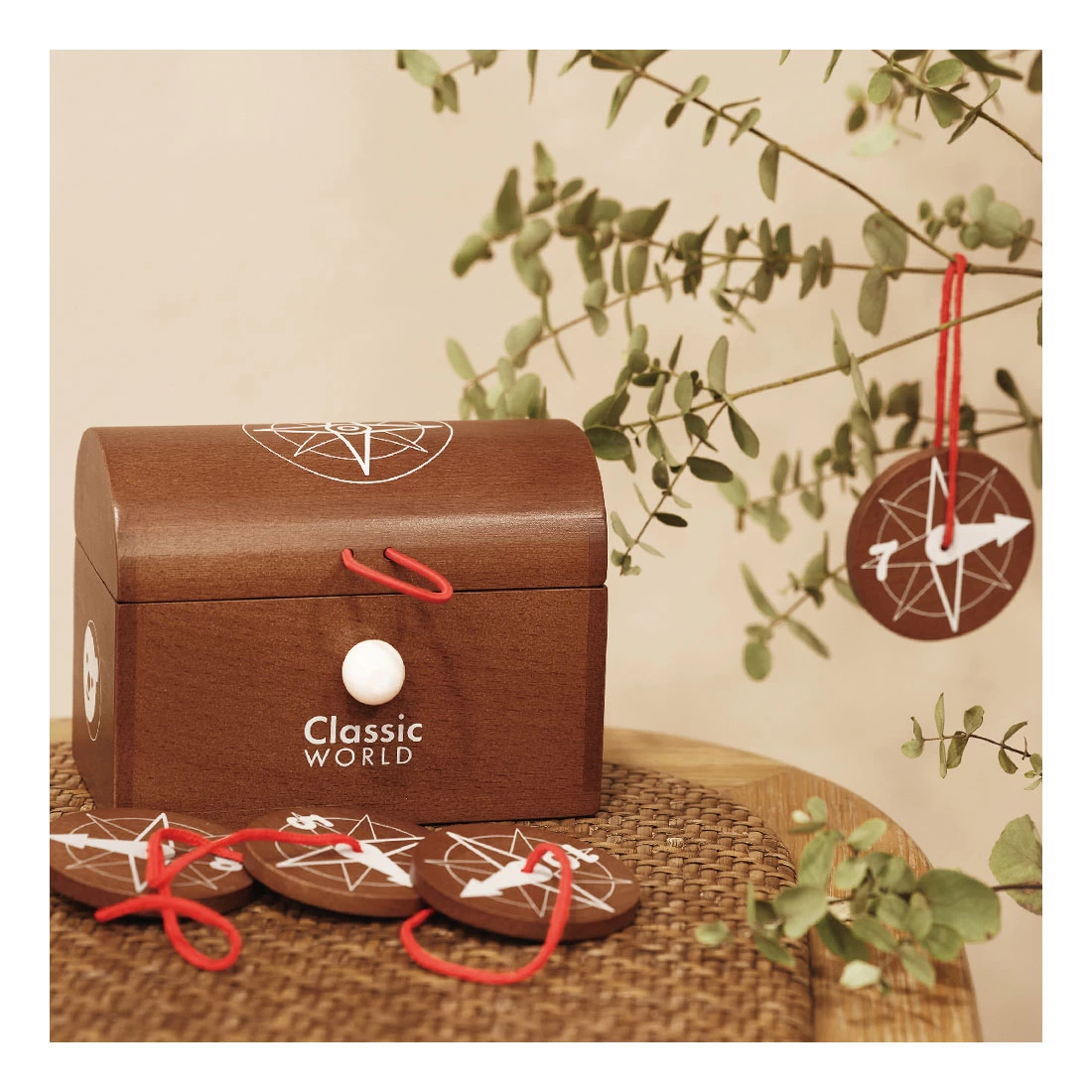 Lasst uns auf Schatzsuche gehen! Verstecke die Schatztruhe und verwende den nummerierten Kompass, um Hinweise in die richtige Richtung zu geben. Verstecken Sie in der Schatzkiste eine Überraschung, zum Beispiel ein kleines Geschenk, etwas Leckeres oder eine süße Nachricht. Ein lustiges und aufregendes Spiel zum Spielen mit Freunden oder der Familie! Merkmale • Schatztruhe aus Holz mit Kompassen zum Aufhängen • Verstecken Sie ein Geschenk oder eine andere Überraschung in der Truhe • 11-teilig: 1 Schatztruhe und 10 Richtungsanzeiger • Maße: 12,0 x 9,0 x 9,5 cm • Geeignet ab 3 Jahren