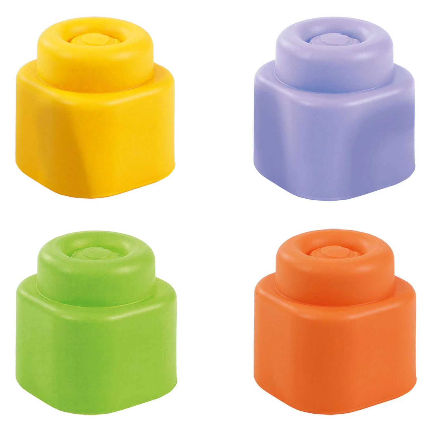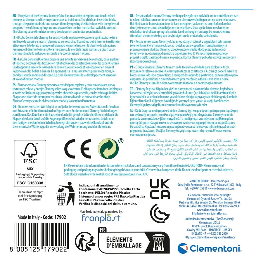 Ein Würfel voller Reliefstrukturen zum Entdecken, viele Aktivitäten zur Förderung der manuellen Geschicklichkeit des Kindes und 4 weiche Blöcke zum Spielen. Das Kind kann die Blöcke oben festklemmen, in die Öffnung stecken und mit den Pop & Flip-Bällen aus der Luke holen. Drücken Sie auf die Kugeln, damit der Deckel auf der anderen Seite herausragt. Wenn Sie auf den flexiblen Riemen drücken, bewegt er sich auf und ab. Spiele, die das Kind immer glücklich machen. Die Clemmy’s sind perfekt für die sensorische Entwicklung und die Feinmotorik des Kindes.