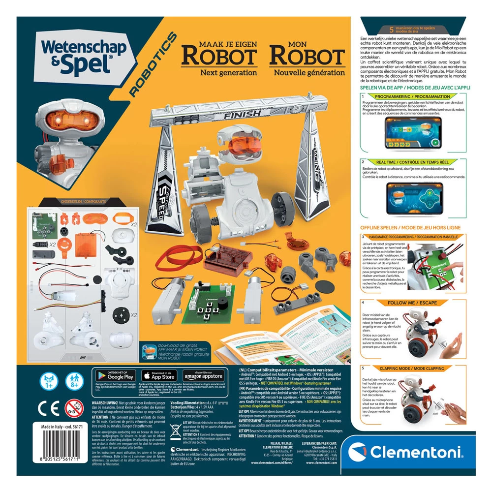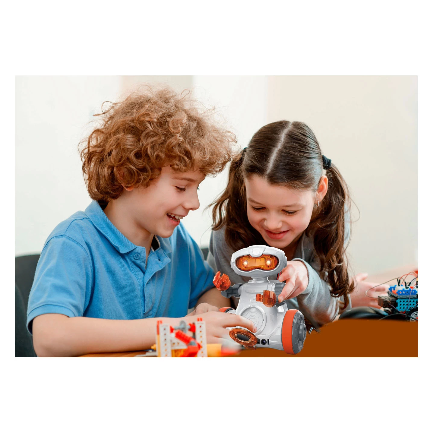 Ein einzigartiger und origineller Roboter zum Zusammenbauen mit vielen lustigen Spielmöglichkeiten! Dank der beiden Infrarotsensoren kann „Make your own Robot“ Hindernissen ausweichen und Ihnen Schritt für Schritt folgen, wie ein echter Jagdhund. Dank des Mikrofons können Sie ihn einfach durch Klatschen in die Hände bedienen, während Sie seine Flugbahn über die Tastenplatine auf der Rückseite oder über die herunterladbare App programmieren können. Ab 8 Jahren.
