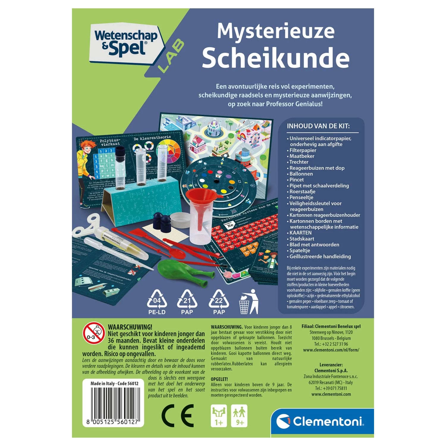 Clementoni sucht Professor Genialus mit dem mysteriösen Chemiebaukasten von Science & Play. Machen Sie verschiedene Experimente, lösen Sie Chemieprobleme und folgen Sie den mysteriösen Hinweisen. Und wer weiß, vielleicht sind Sie der gesuchte Chemieprofessor. Das Set ist für Kinder ab 9 Jahren völlig sicher.
