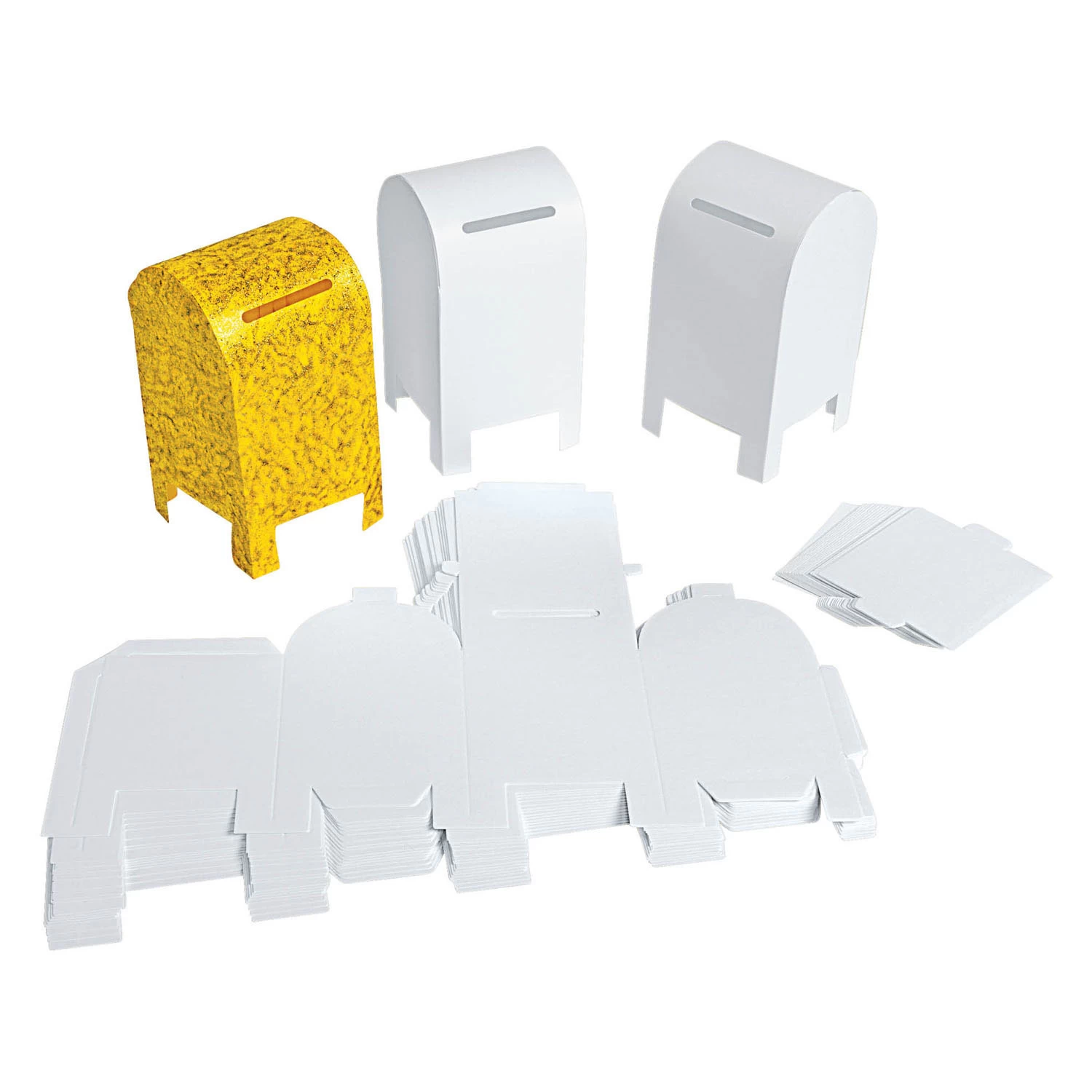 Eine unterhaltsame Aktivität für Ihre Klasse: Briefkästen falten und dekorieren! Das Set enthält 20 Kartonbögen mit Faltlinien, die sich mit der beiliegenden Anleitung ganz einfach zu Briefkästen in den Maßen 8 x 8 x 15 Zentimeter falten lassen. Anschließend können die Kinder die weißen Briefkästen aus Pappe nach eigenem Geschmack personalisieren und dekorieren. Schön, die Briefkästen im Klassenzimmer aufzustellen und die Kinder sich zum Beispiel gegenseitig Komplimente oder Notizen schicken zu lassen!