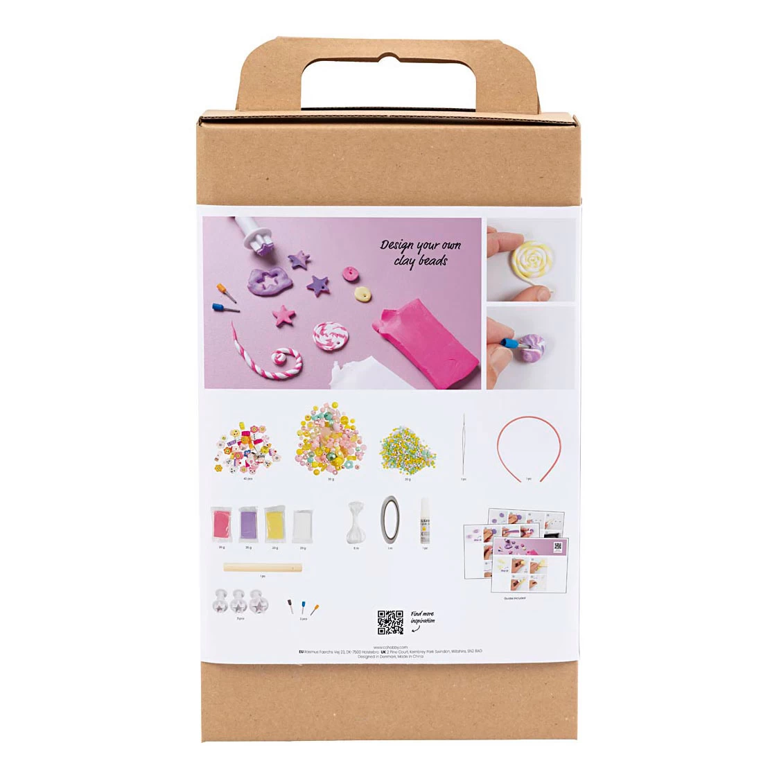 Mit diesem Set können Kinder farbenfrohen Schmuck aus feinem Fimo und Perlen in leuchtenden Farben herstellen. Das Set enthält alle benötigten Materialien und Anleitungen. Träumt Ihr Kind davon, Schmuckdesigner zu werden? Dann ist dieses Set genau das Richtige für Sie. Dank der flexiblen Polymermasse ist es super einfach, eigene Schmuckperlen in runder und sternförmiger Form herzustellen. Sobald die Perlen im Ofen ausgehärtet sind, können sie zu Armbändern, Halsketten und Haarbändern in jedem gewünschten Stil verarbeitet werden. Inhalt: Kunststoffperlen, Figurenperlen, Rocailles, elastische Kordel, Kleber, Rundausstecher, Sternausstecher, kleine Ausstecher, doppelseitiges Klebeband, Stirnband, Schmuckton