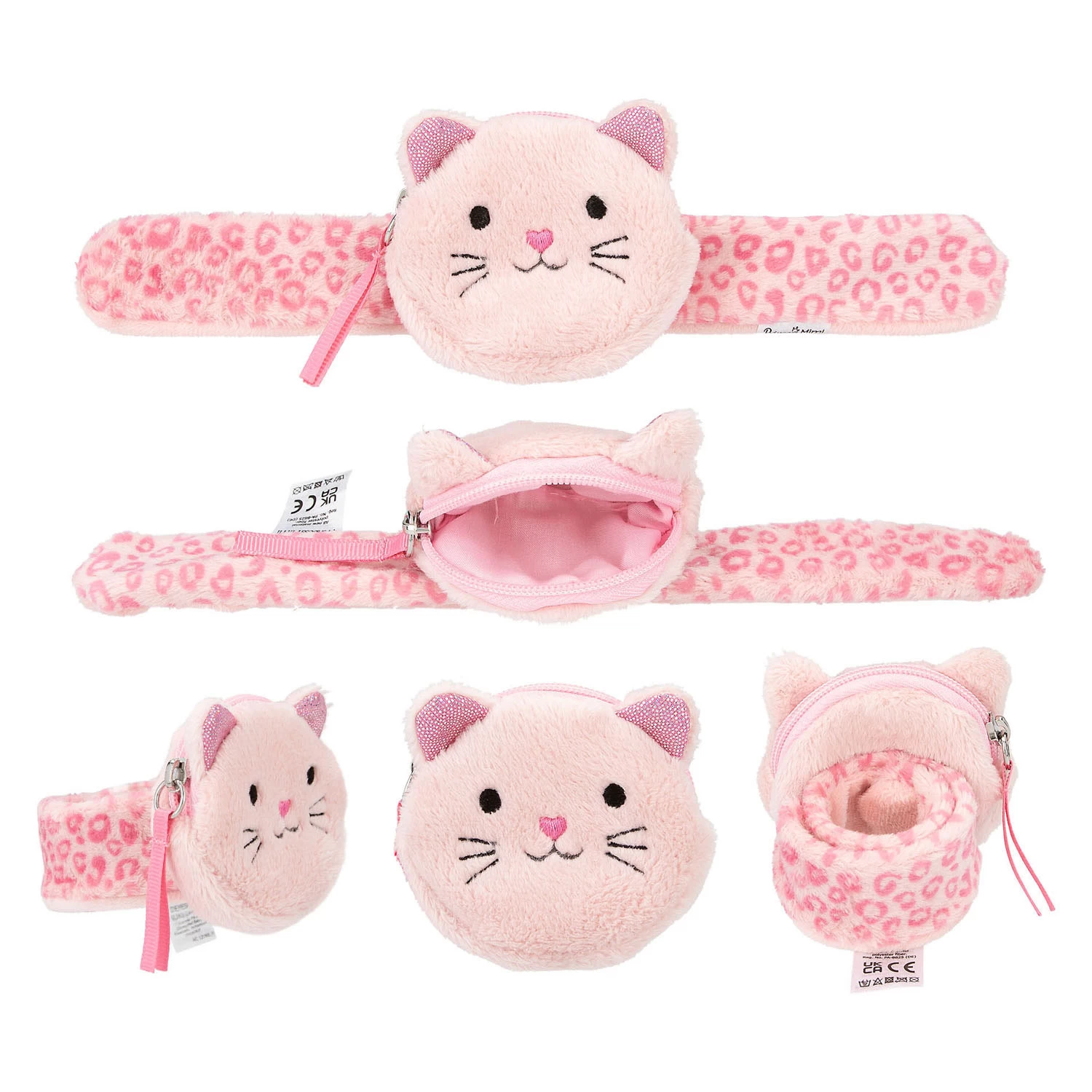 Süß und sehr praktisch! Das kuschelige Klickarmband von Princess Mimi mit Geldbörse in Form eines Kuscheltierkopfes mit Reißverschluss lässt sich sicher und nah am Handgelenk tragen. Erhältlich in 3 niedlichen Designs: Hase, Katze und Hirsch. Material: 100 Prozent Polyester. Empfohlen ab 18 Monaten.
