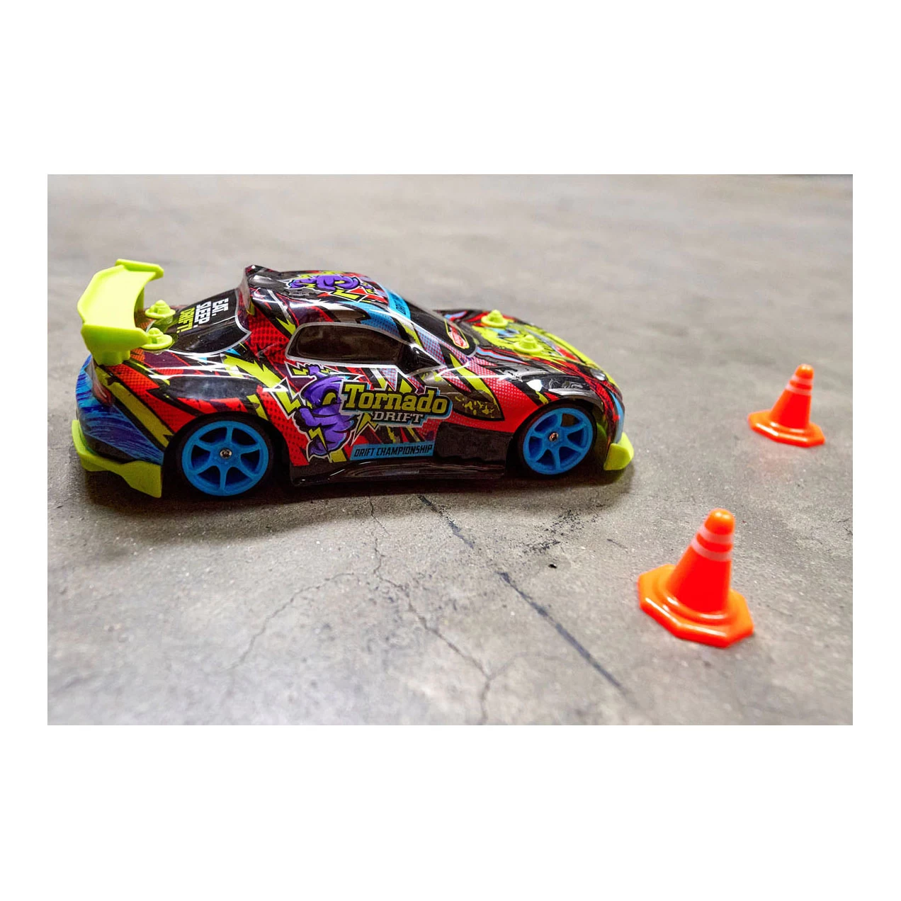 Ferngesteuertes Auto: Actiongeladener Rennspaß und Driftmanöver für Kinder. Ausgestattet mit einem leistungsstarken Allradantrieb und Turbofunktion bringt dieses Spielzeugauto alles mit, was Sie für actiongeladene Driftmanöver benötigen. Das Fahrzeug ist für den Innen- und Außenbereich geeignet, kann Geschwindigkeiten von bis zu 10 km/h erreichen und erstaunliche Kurvenmanöver vollführen. Nach 5 Minuten Inaktivität wechselt das Spielzeugauto automatisch in den Schlafmodus, um die Batterie zu schonen. Spielzeugauto mit auffälligem Licht und Zubehör. Mit einem farbenfrohen, auffälligen Fahrgestell und einer stilvollen Beleuchtung an der Unterseite ist dieser RC-Rennwagen garantiert der Star der Show! Das Fahrzeug verfügt außerdem über eine praktische USB-Ladefunktion zum Aufladen des Akkus und wird mit 2 Spielkegeln zum Markieren einer Rennstrecke oder Kurven geliefert. Merkmale • Ferngesteuertes Auto – Dieses ferngesteuerte Spielzeug-Rennauto ist für Kinder ab 6 Jahren konzipiert und für den Innen- und Außenbereich geeignet. Mit der Fernbedienung lässt sich das Fahrzeug in alle Richtungen steuern und Driftmanöver mit bis zu 10 km/h durchführen. • Coole Extras – Das Fahrzeug verfügt außerdem über ein auffälliges rotes Licht an der Unterseite sowie 2 Spielzeugkegel zum Üben von Drift-Stunts. • Technische Daten – Länge: 22 cm (1:24), 2-Kanal-Fernbedienung (2,4 GHz zur gleichzeitigen Steuerung von bis zu 16 Fahrzeugen), USB-Ladefunktion, Ladezeit: ca. 30 Minuten. Fahrzeit: ca. 60 Minuten, Fahrzeit: ca. 20 Minuten, Schlafmodus, inklusive Batterien und wiederaufladbarer Fahrzeugbatterie