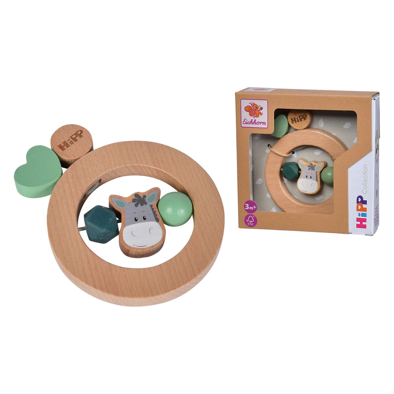 Der Eichhorn Baby Hipp Holzgreifring Esel ist ein bezauberndes und interaktives Spielzeug für Babys. Dieser niedliche Esel ist aus hochwertigem Holz gefertigt und hat auf dem Rücken einen Greifring, den kleine Hände leicht greifen können. Der Greifring hilft dabei, die Greif- und Greiffähigkeiten des Babys zu entwickeln und stimuliert seine Sinneswahrnehmung durch verschiedene Texturen und Formen. Das Spielzeug regt außerdem die Fantasie und das fantasievolle Spielen an. Mit ihrem sicheren und langlebigen Design ist die Greifring-Staffelei aus Holz eine perfekte Ergänzung für das Spielerlebnis jedes Babys.