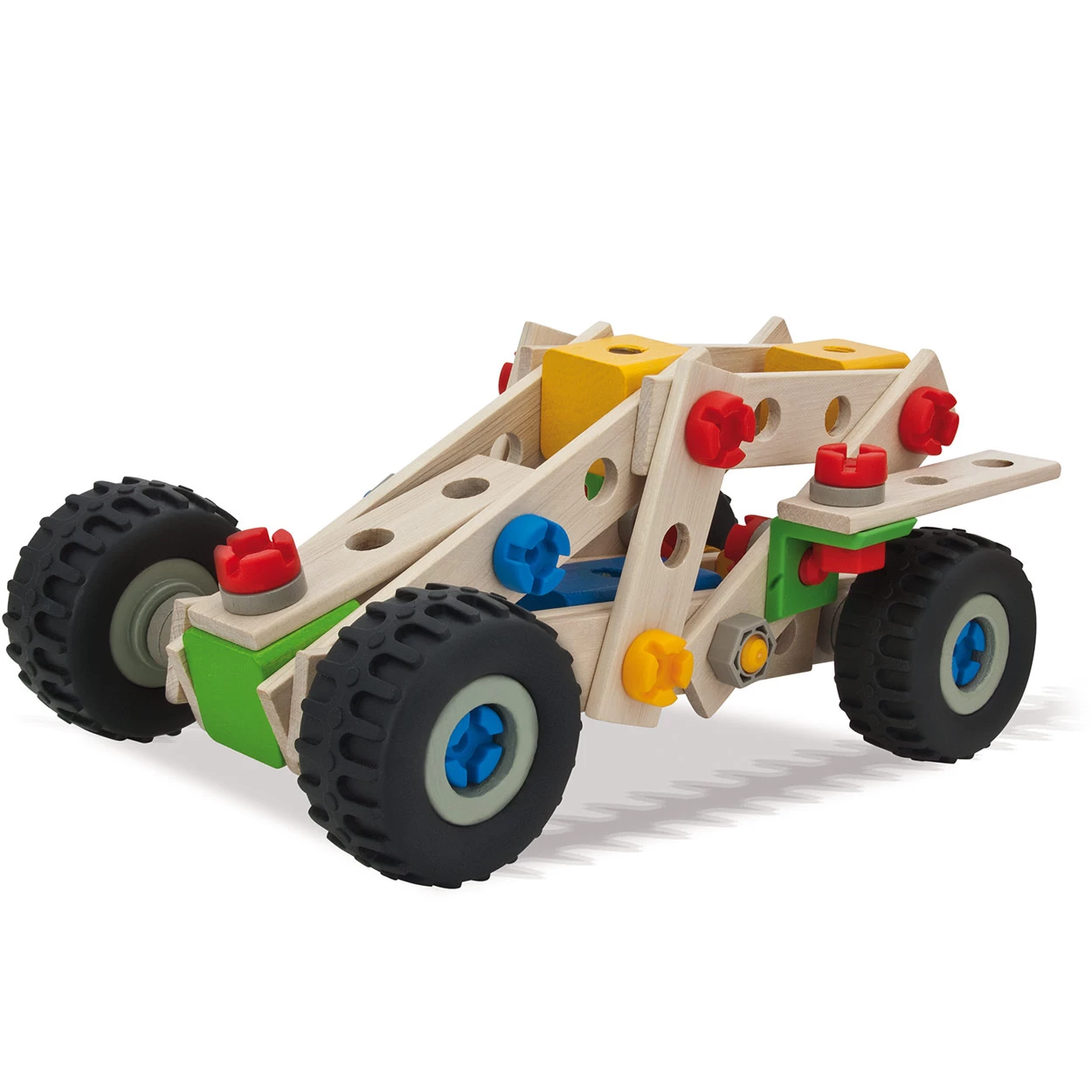 Bauen Sie Ihre eigenen Fahrzeuge mit diesem 4in1-Baukasten von Eichhorn. Setzen Sie die 100 farbenfrohen Teile aus Holz und robustem Kunststoff zusammen und erschaffen Sie die coolsten Fahrzeuge. Mit den robusten Rädern komplettieren Sie das robuste Motorrad, den Rennwagen, das Quad und das Moped. Das Spielen mit dem Eichhorn -Baukasten regt die Entwicklung der Fantasie und Feinmotorik an.