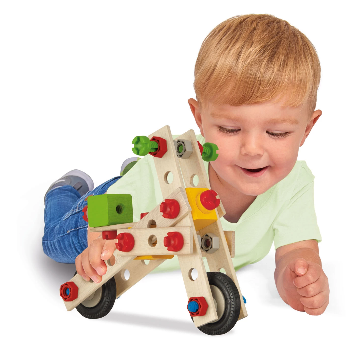 Haben Sie schon einmal ein Fahrrad gebaut? Oder ein Flugzeug? Mit den Eichhorn Konstrukteuren ist alles möglich. Mit den Brettern, Blöcken, Rädern und Schrauben können Sie verschiedene coole Fahrzeuge bauen. Ihre Feinmotorik und Ihr technisches Verständnis werden auf die Probe gestellt. Von diesen Fähigkeiten werden Sie ein Leben lang profitieren.
