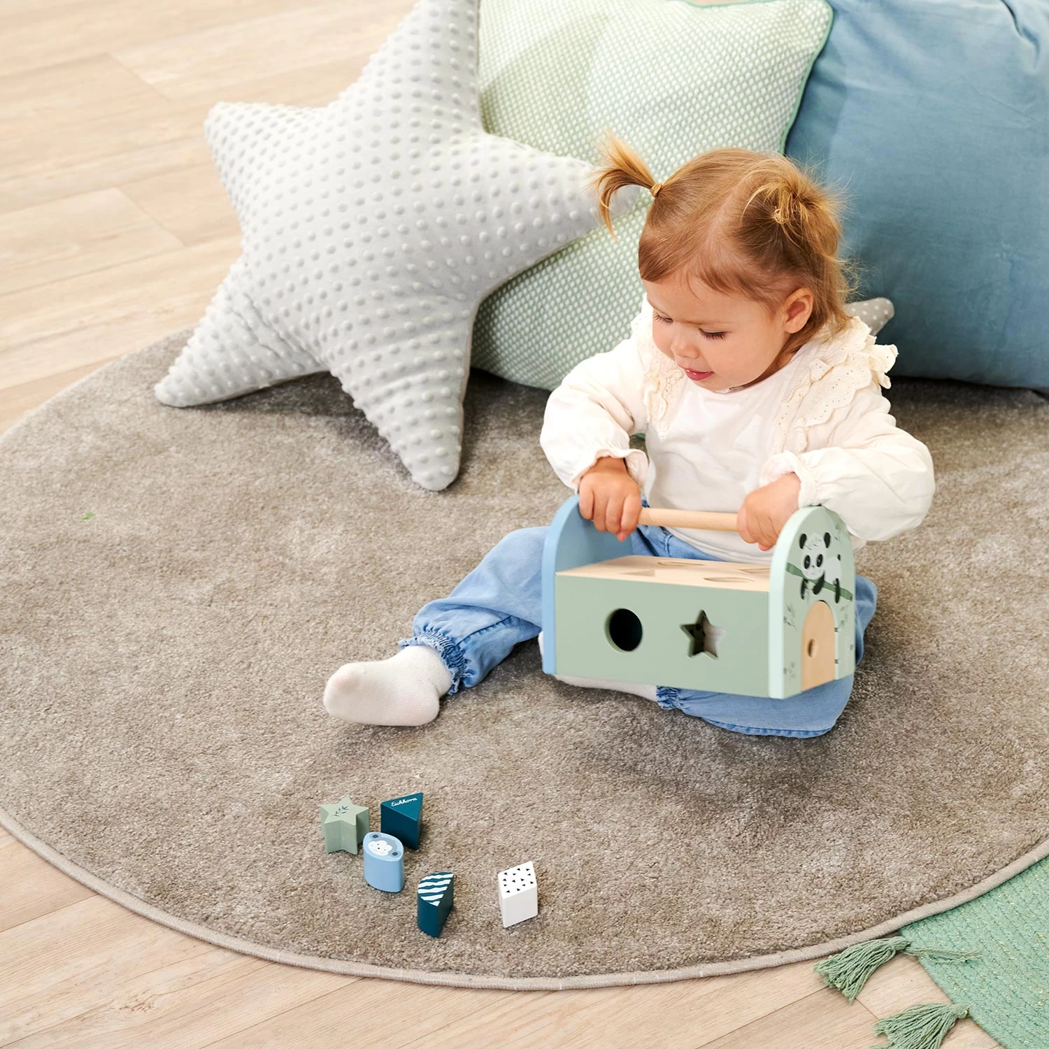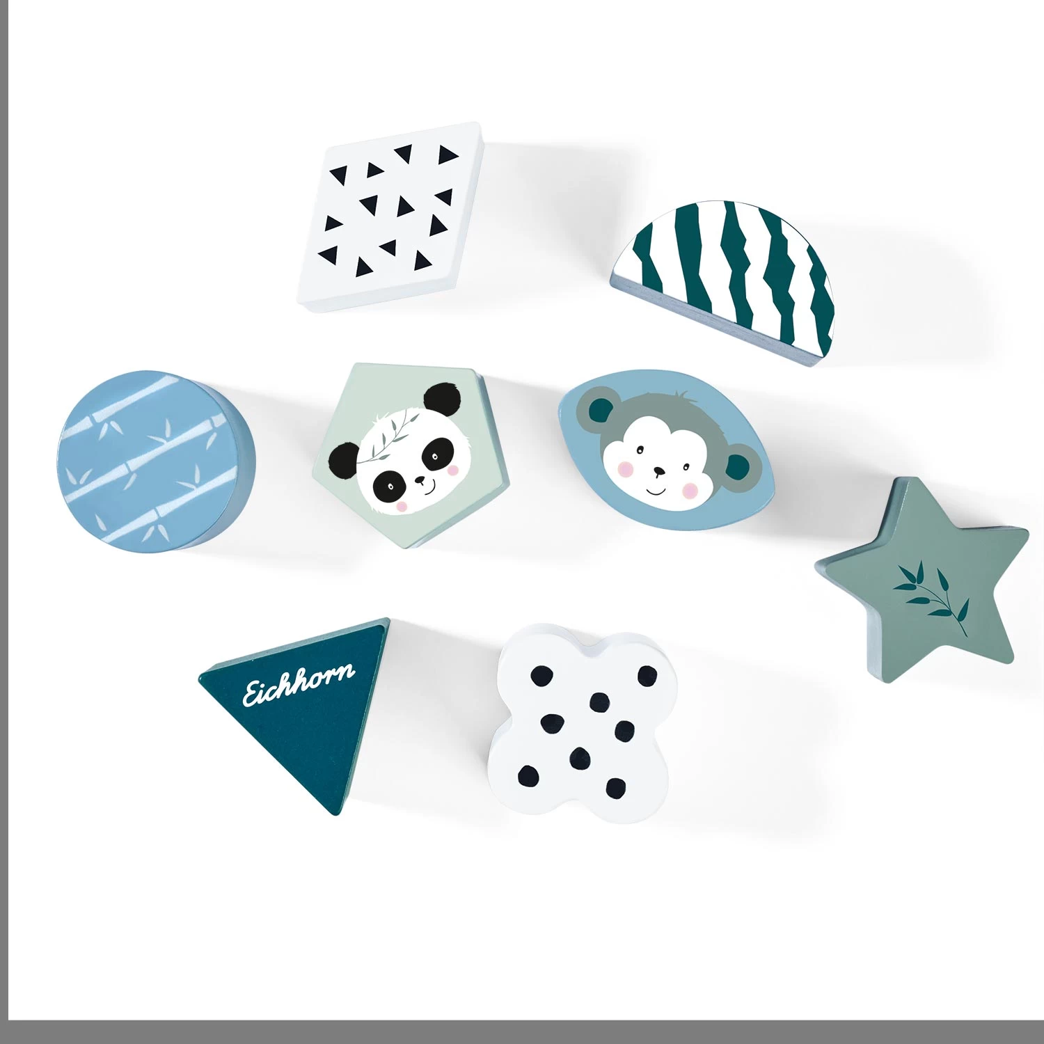Was für süße Tiere! Dieser schöne Formensortierer aus Holz hat ein sehr schönes Design. Kleinkinder und Kleinkinder ab 1 Jahr können mit diesem Formensortierer spielerisch das Erkennen von Formen lernen und ihre feine Handmotorik trainieren. Platzieren Sie die richtige Form in der richtigen Aussparung und stellen Sie sicher, dass sich alle 8 Holzformen wieder im Panda- und Affenhaus befinden. Formensortierer aus Holz Der Formensortierer aus Holz verfügt über einen praktischen Griff, mit dem Kinder das Spiel problemlos überall hin mitnehmen können. Auf halbem Weg weiter in der Küche spielen? Kein Problem! Sobald Sie es geschafft haben, die Stern-, Oval-, Fünfeck- und anderen Formen in den Sortierer zu bekommen, öffnen Sie einfach die Holztür, um die Formen wieder auszuschütteln. Der Formstörer aus Holz von Eichhorn ist aus stabilem Holz gefertigt und mit kindersicheren Materialien behandelt. Geeignet für Kinder ab 1 Jahr.