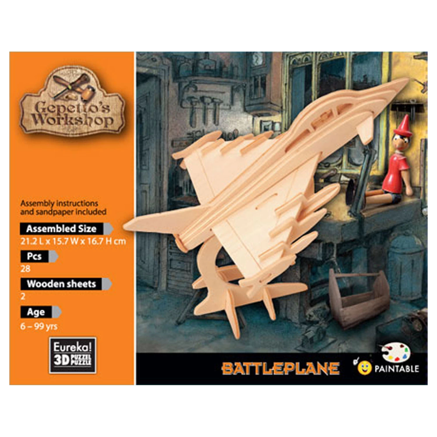 Bauen Sie Ihren eigenen einzigartigen Kampfjet mit einem 3D-Holzpuzzle! Der Bausatz besteht aus 28 verschiedenen Holzteilen. Schnappen Sie sich die Anleitung und erfahren Sie Schritt für Schritt, wie Sie den F16 zusammenbauen. Hast du es geschafft, es zusammenzustellen? Dann können Sie es zu einem besonders lustigen Bastelprojekt machen, indem Sie das Flugzeug bemalen oder dekorieren. Als Ergebnis erhalten Sie ein einzigartiges Kunstwerk aus Holz, das Sie als Dekoration ausstellen können. Die Größe des kompletten Fahrzeugs beträgt 21,2 x 15,7 x 16,7 cm.