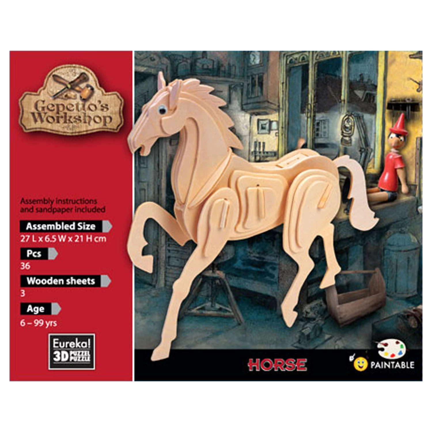 Dieses wunderschöne Holzpferd kann es kaum erwarten, zusammengebaut zu werden! Der Bausatz besteht aus 36 verschiedenen Holzteilen. Schnappen Sie sich die Anleitung und erfahren Sie Schritt für Schritt, wie Sie das Tier zusammenbauen. Hast du es geschafft, es zusammenzustellen? Dann können Sie es noch lustiger gestalten, indem Sie das Pferd bemalen oder dekorieren. Dadurch erhalten Sie eine einzigartige Figur, die Sie als Dekoration ausstellen können. Die Größe des kompletten Tieres beträgt 27 x 6,5 x 21 cm.