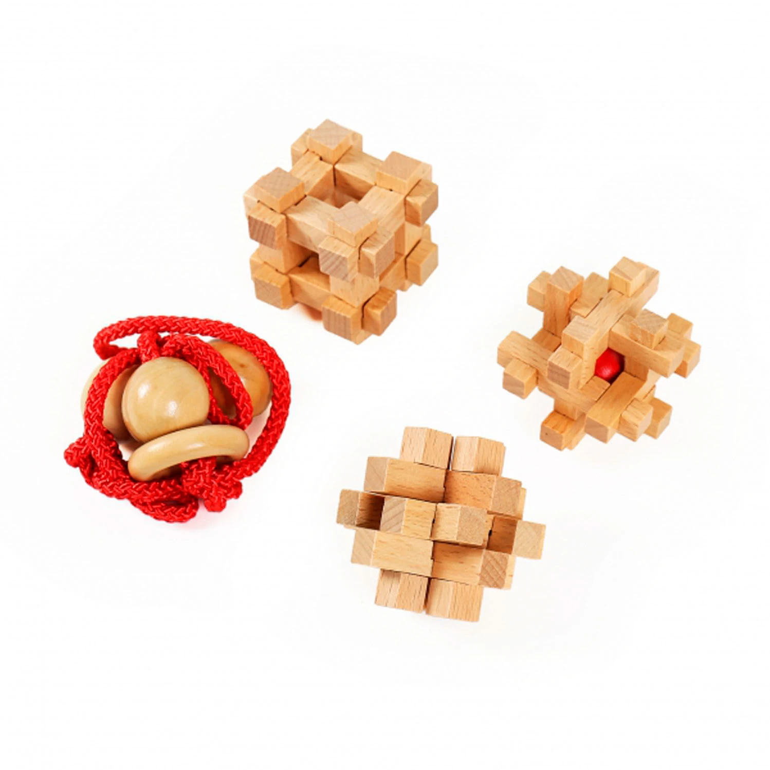 Sind Sie ein Puzzle-Experte? Dann versuchen Sie, diese hölzernen Gehirnrätsel Extreme zu lösen. Das Paket enthält 4 komplizierte Holzpuzzles: das Gefängnishaus, die Konstruktionen, das Doppelschloss und das Holz, die darauf warten, von Ihnen gelöst zu werden. Trennen Sie die Teile des Puzzles und versuchen Sie dann, die Teile wieder zusammenzusetzen. Geeignet ab 12 Jahren.