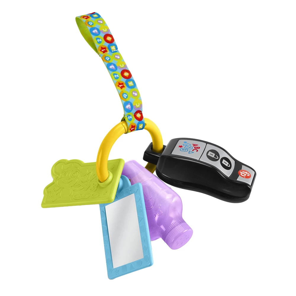 Mit den Learning Fun Games und Go Activity Keys von Fisher-Price ist Ihr Baby bereit für die Reise voller Lernspaß und Abenteuer. Dieses Spielzeug für Babys und Kleinkinder im Reisethema bietet vier anregende Aktivitäten an einem leicht zu greifenden Schlüsselband: eine Musikautoschlüsselform, eine weiche „Handwaschflasche“, einen Bilderrahmen mit Spiegel und ein Beißspielzeug mit „Sportabzeichen“. Dieses Spielzeug fördert die Feinmotorik und führt die Kleinen an Zählen, Ursache und Wirkung sowie Rollenspiele heran. Wählen Sie mit der Schaltfläche mit dem Globus eine Sprache aus: Niederländisch, Französisch, Deutsch, Italienisch oder Englisch