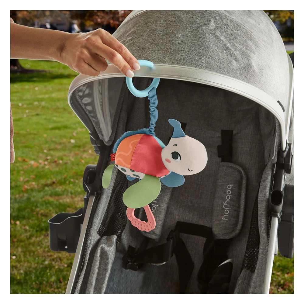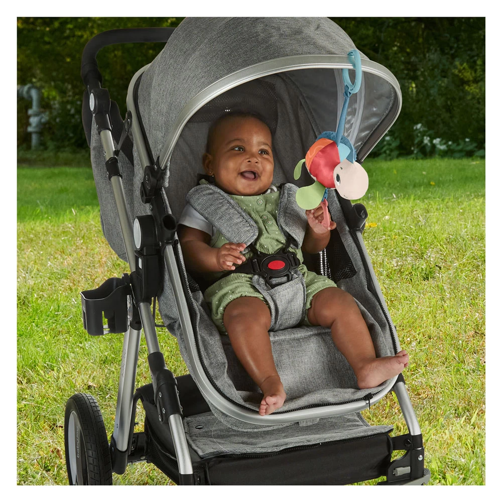Das weiche Kinderwagenspielzeug Planet Friends Watch Me Bounce Turtle von Fisher-Price ist von gefährdeten oder gefährdeten Arten inspiriert, besteht zu 80 % aus recyceltem Post-Consumer-Kunststoff und wird in einer FSC-zertifizierten Verpackung geliefert, um eine verantwortungsvolle Forstwirtschaft zu unterstützen. Das Spielzeug verfügt über verschiedene taktile und visuelle Elemente für ein immersives Sinnesspiel und verfügt über einen Zieh- und Freigabehebel, um lustige Jingle-Sounds und Hüpfaktionen zu aktivieren. Der Griff fungiert auch als BPA-freier Beißring in Form einer Muschel. Dieses Spielzeug lässt sich problemlos an einem Kinderwagen, einem Baby-Fitnessstudio oder einer Wickeltasche befestigen und ist so für unterwegs geeignet.
