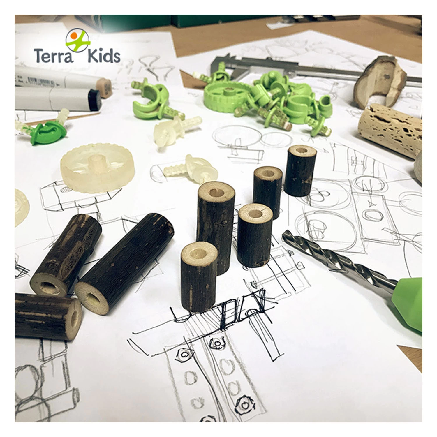 Sammeln, Sägen, Bohren, Zusammenbauen. Mit den Terra Kids Connectors lassen sich viele faszinierende Tiere, Fahrzeuge und Figuren bauen. Das Prinzip ist so einfach wie genial: Löcher in Holzstücke bohren, Verbinder einsetzen und diese mit einem anderen Stück Holz verbinden, so entstehen nach und nach Konstruktionen. Im Starterset sind bereits einige vorbereitete Holzstücke mit Rinde enthalten, aus denen sich eine Krabbe basteln lässt. Das Handbuch enthält viele Vorschläge für andere Konstruktionen.