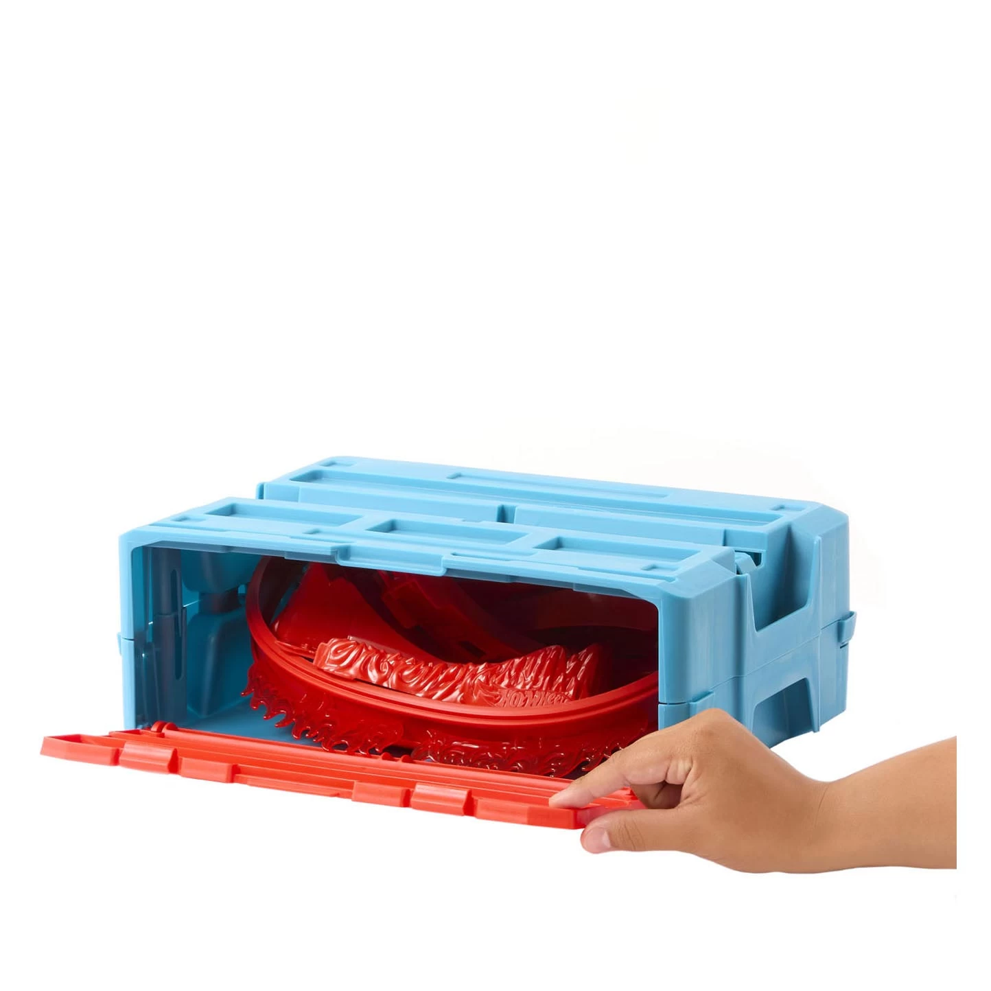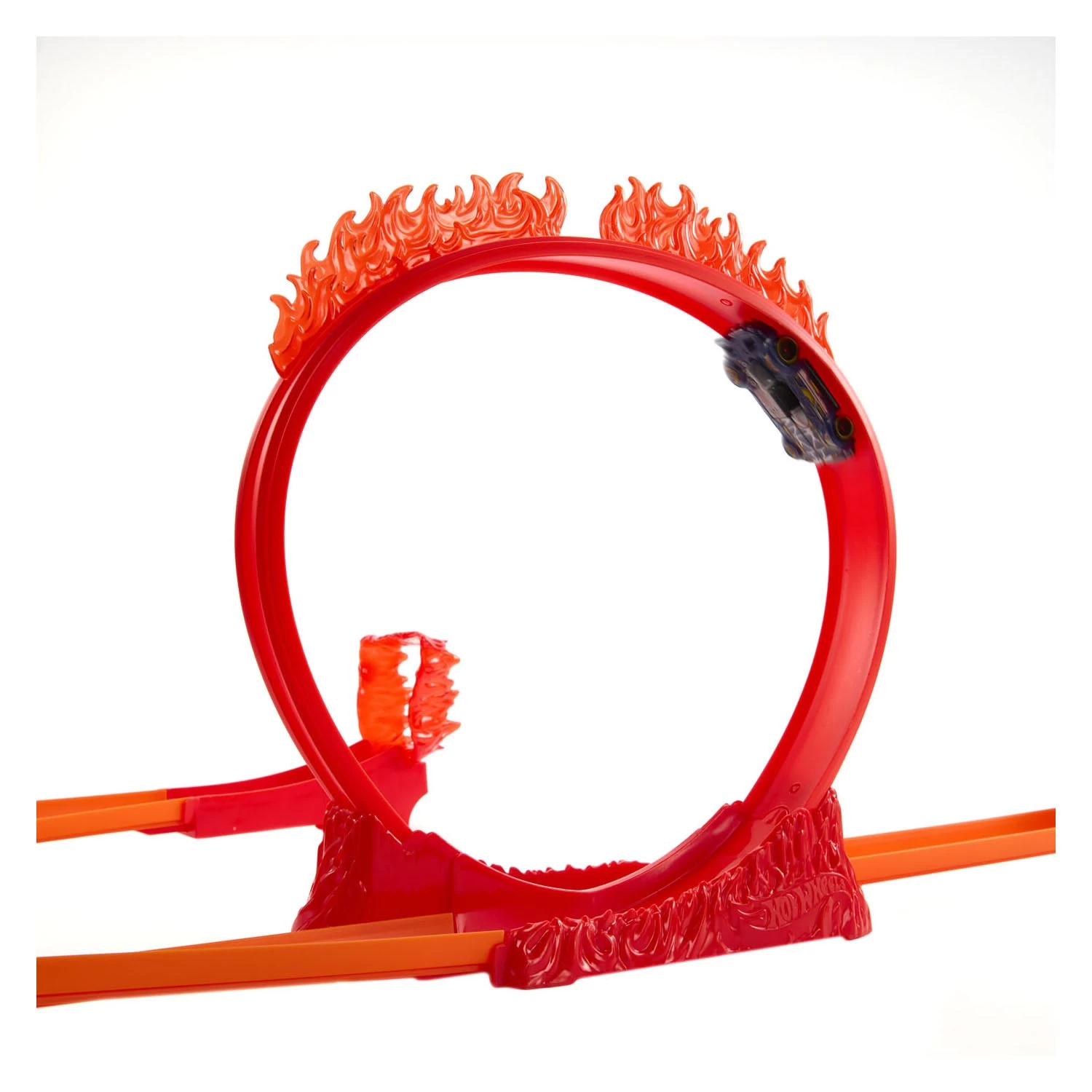 Machen Sie Rennen und Stunts besonders heiß mit dem Hot Wheels Track Builder Flame Stunt-Set. Das Set enthält 16 Schienenteile zum Thema Feuer, darunter eine Flammenschleife, einen Feuerring und Flammenflossen. Alles passt sauber und bequem in die modulare Aufbewahrungsbox. Kinder können eines von vier Streckenbeispielen bauen oder ihre eigene Strecke in Kombination mit anderen Hot Wheels Strecken erstellen. (Zusätzliche Schienensets sind separat erhältlich.) Enthält ein Hot Wheels Auto. Farben und Dekorationen können variieren.