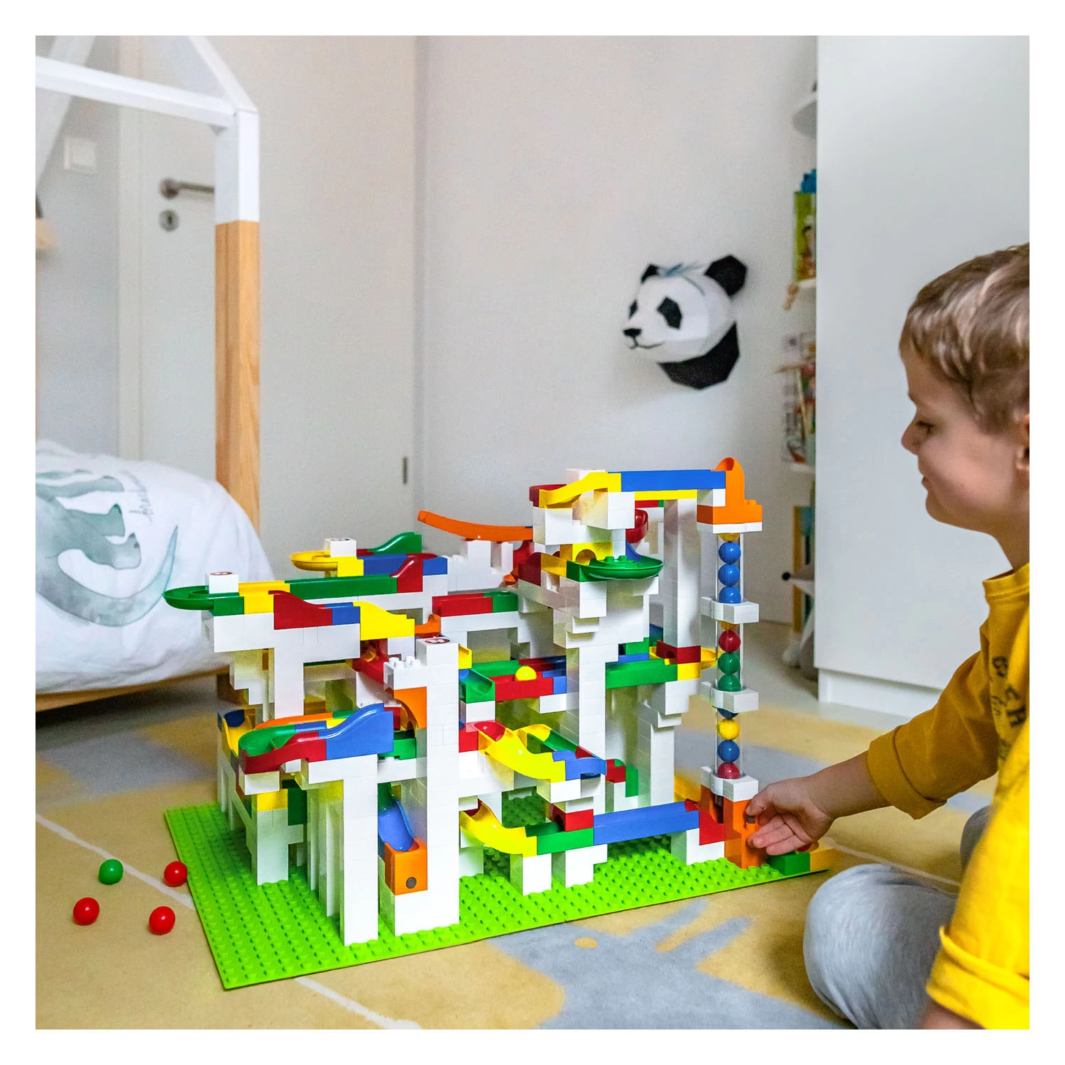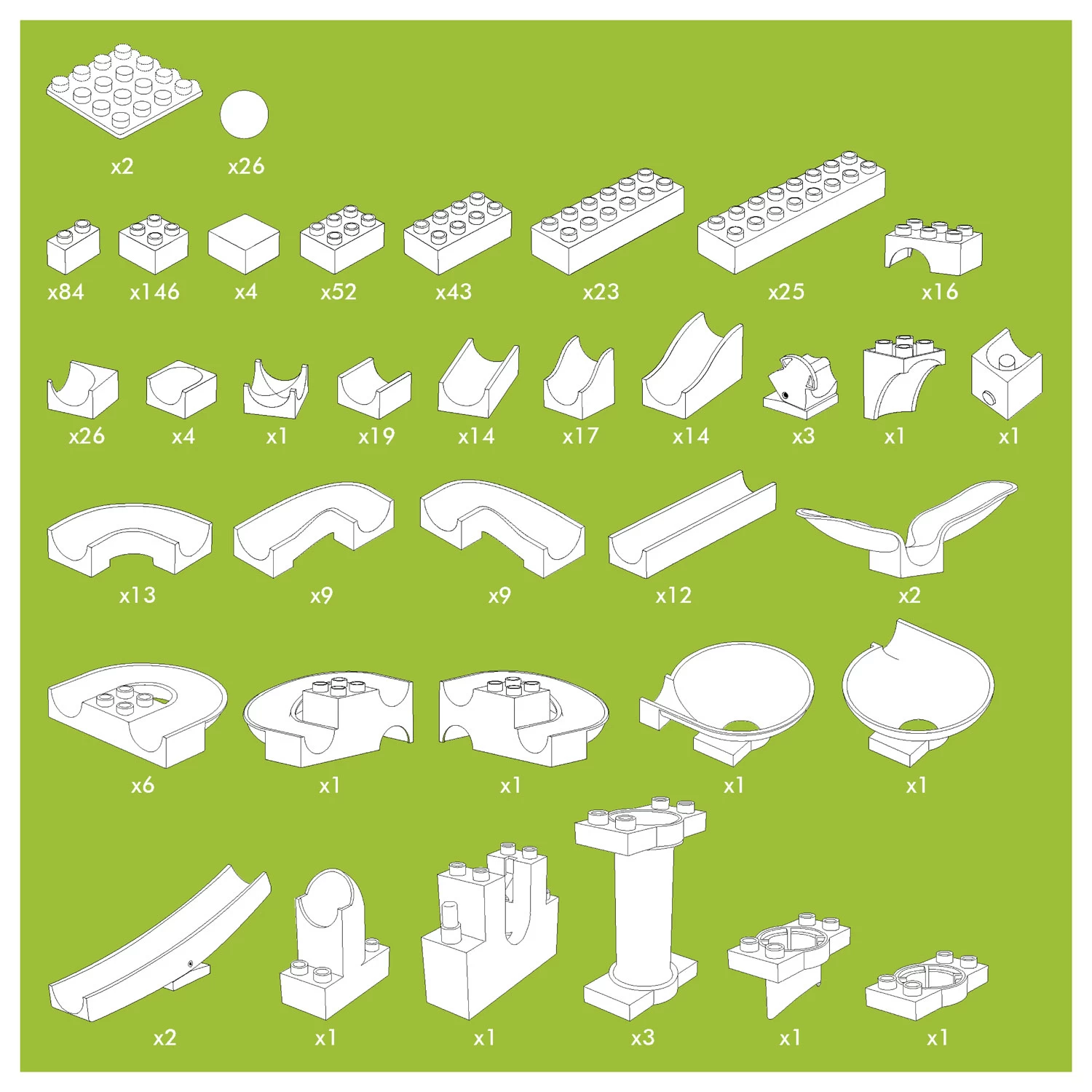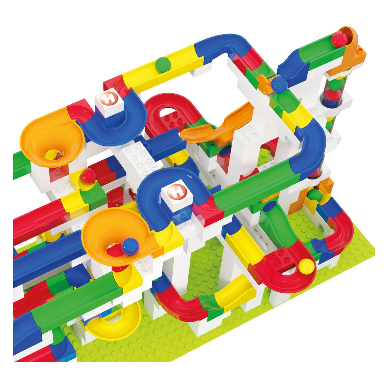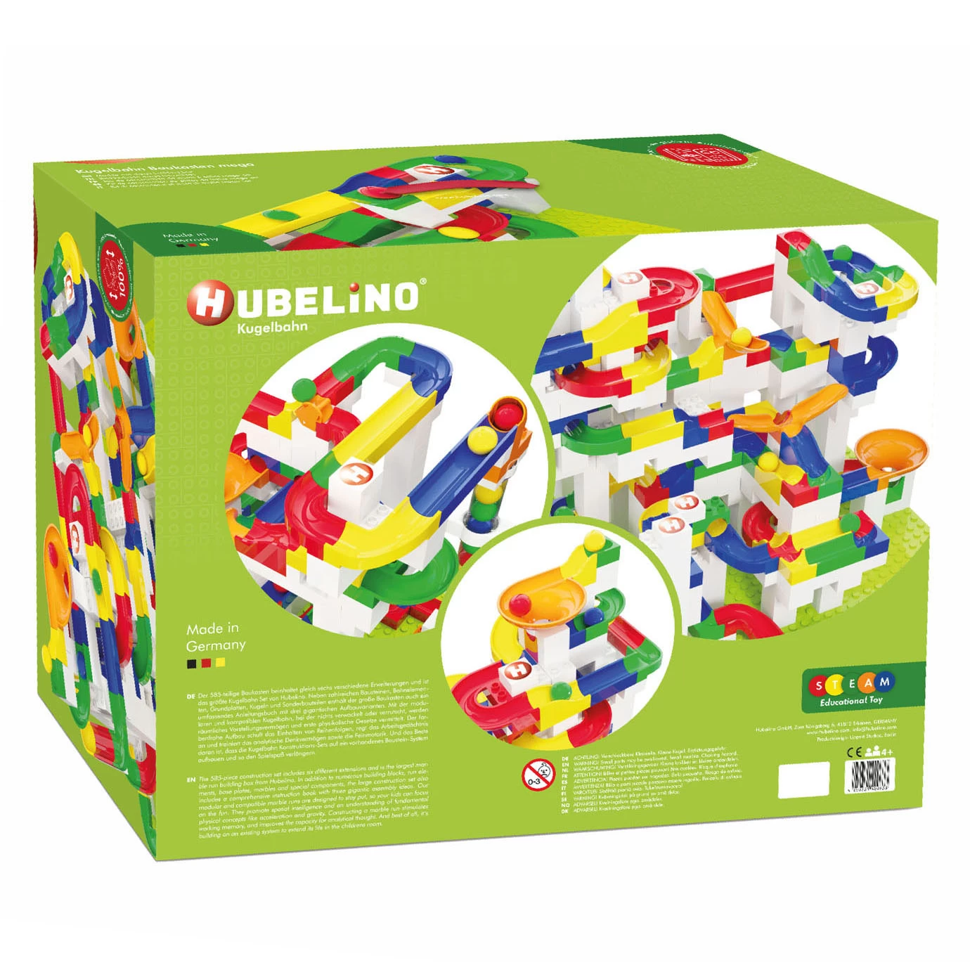 Das größte Murmelbahn-Bauset von Hubelino enthält alle Teile zum Bau riesiger Murmelbahnen inklusive der sechs Erweiterungen Twister, Katapult, Wiegenfallschirm, Wippe, Weiche und Murmellift. Durch die große Anzahl unterschiedlicher Bausteine und Laufelemente ist der Bau sowohl einfacher als auch anspruchsvoller Kugelbahnen, Rennbahnen und Bahnen möglich, was den Mega-Baukasten zu einem idealen Baukasten für Einsteiger macht. Eine ausführliche bebilderte Anleitung mit drei verschiedenen Aufbauvarianten erleichtert den Einstieg in den Bau und inspiriert kleine Baumeister zu eigenen Aufbauideen. Verbessern Sie das räumliche Bewusstsein und die Denkfähigkeiten. Die modularen und kompatiblen Kugelbahnen sind so konzipiert, dass sie an Ort und Stelle bleiben, sodass sich Kinder auf den Spaß konzentrieren können. Sie fördern die räumliche Intelligenz und das Verständnis grundlegender physikalischer Konzepte wie Beschleunigung und Schwerkraft. Ob mit einer Spielanleitung oder im freien Spiel: Das Erstellen einer Kugelbahn regt das Arbeitsgedächtnis an und verbessert das analytische Denkvermögen. Und das Beste: Wir bauen auf einem bestehenden System auf, um die Lebensdauer im Kinderzimmer zu verlängern. Kombinierbar mit allen gängigen Kugelbahnen. Alle 585 Teile und Komponenten der Mega Building Box sind mit gängigen Komponenten anderer Hersteller kompatibel und können somit kreativ mit Ihren vorhandenen Bausteinen und Themenwelten kombiniert werden. Wie alle Hubelino -Produkte wird auch die Mega Building Box nach höchsten Qualitätsstandards in Deutschland produziert. STEAM-Baukasten Bei den Produkten von Hubelino steht ein ausgewogenes Verhältnis zwischen Spielspaß und Lerneffekt im Vordergrund. Deshalb stehen bei der Entwicklung neuer Produkte immer die Lerninhalte im Mittelpunkt und intelligentes Design macht sie zu Spielzeugen mit pädagogischem Mehrwert.