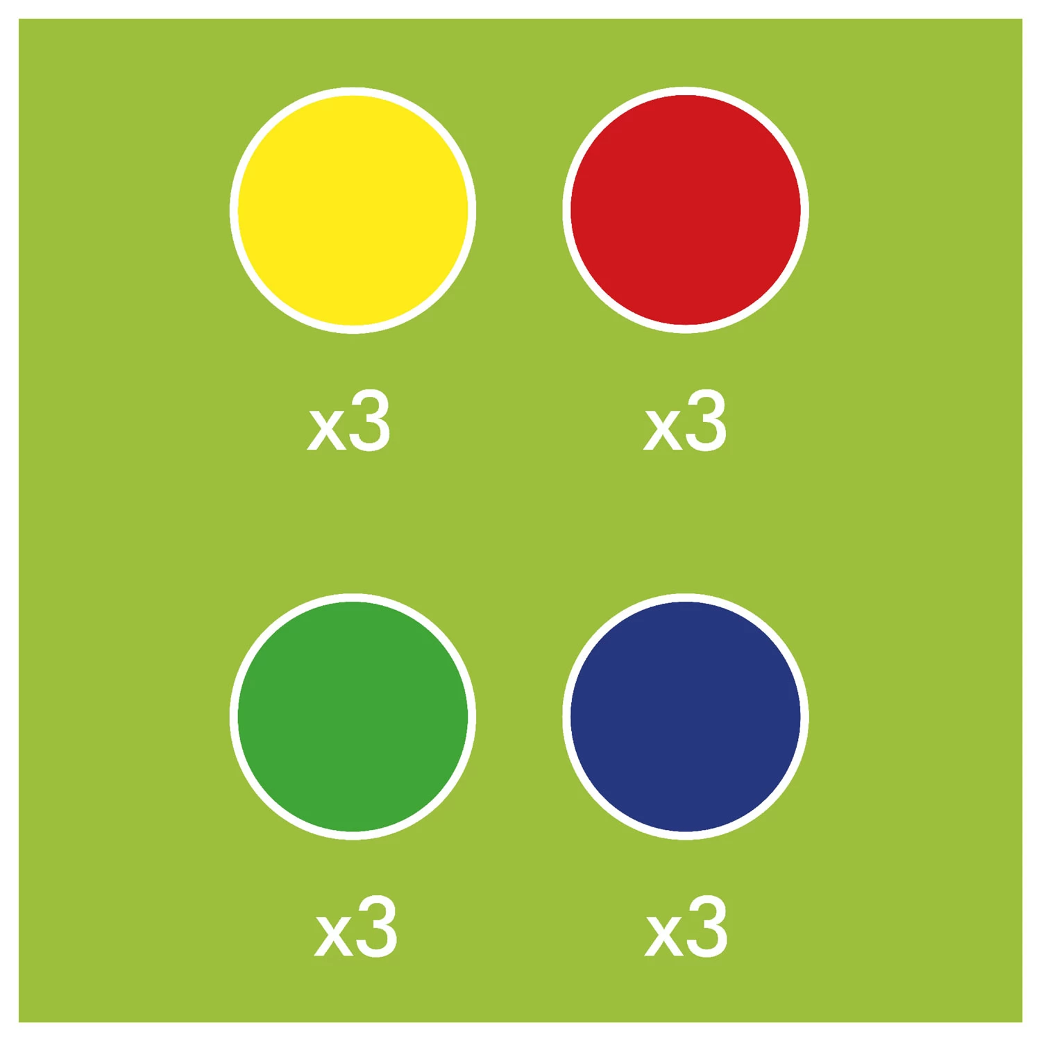 Dieses Paket enthält 12 Murmeln in den Farben: Blau, Grün, Gelb und Rot.