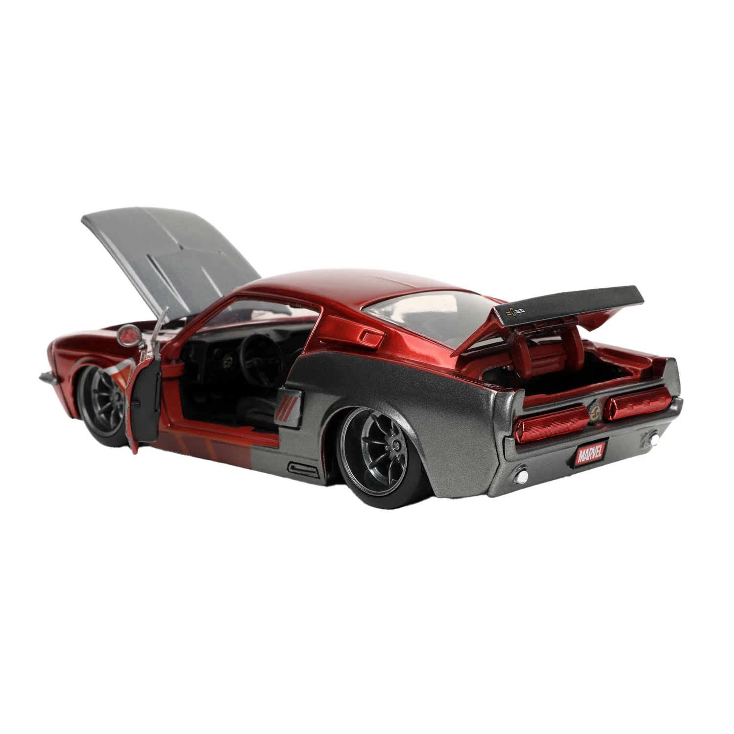 „Es ist Showtime“ … Beginnen Sie mit dem 1967er Ford Mustang Shelby GT500 aus Druckguss von Star Lord. Inspiriert vom Design von „Guardians of the Galaxy“, verfügt sein Fahrzeug über eine tiefrote Premium-Lackierung und Grafiken, die von den Details seines Modells inspiriert sind Kleidung. Die Scheinwerfer passen zur ikonischen Brille seiner Maske. Der Mustang verfügt über zu öffnende Türen, eine Motorhaube, einen Kofferraum, eine detaillierte Innenausstattung, hochwertige Gummireifen und funktionierende Räder. Zu diesem Fahrzeug gehört auch eine 6,3 cm große Star-Lord-Sammelfigur aus Druckguss, die mit Sicherheit ein Blickfang in jeder Fahrzeugsammlung sein wird! Sammeln Sie alle Marvel-Druckgussmodelle, darunter Captain America, Iron Man, Black Widow, Spider-Man, Groot, Doctor Strange, Winter Soldier, Falcon und mehr.