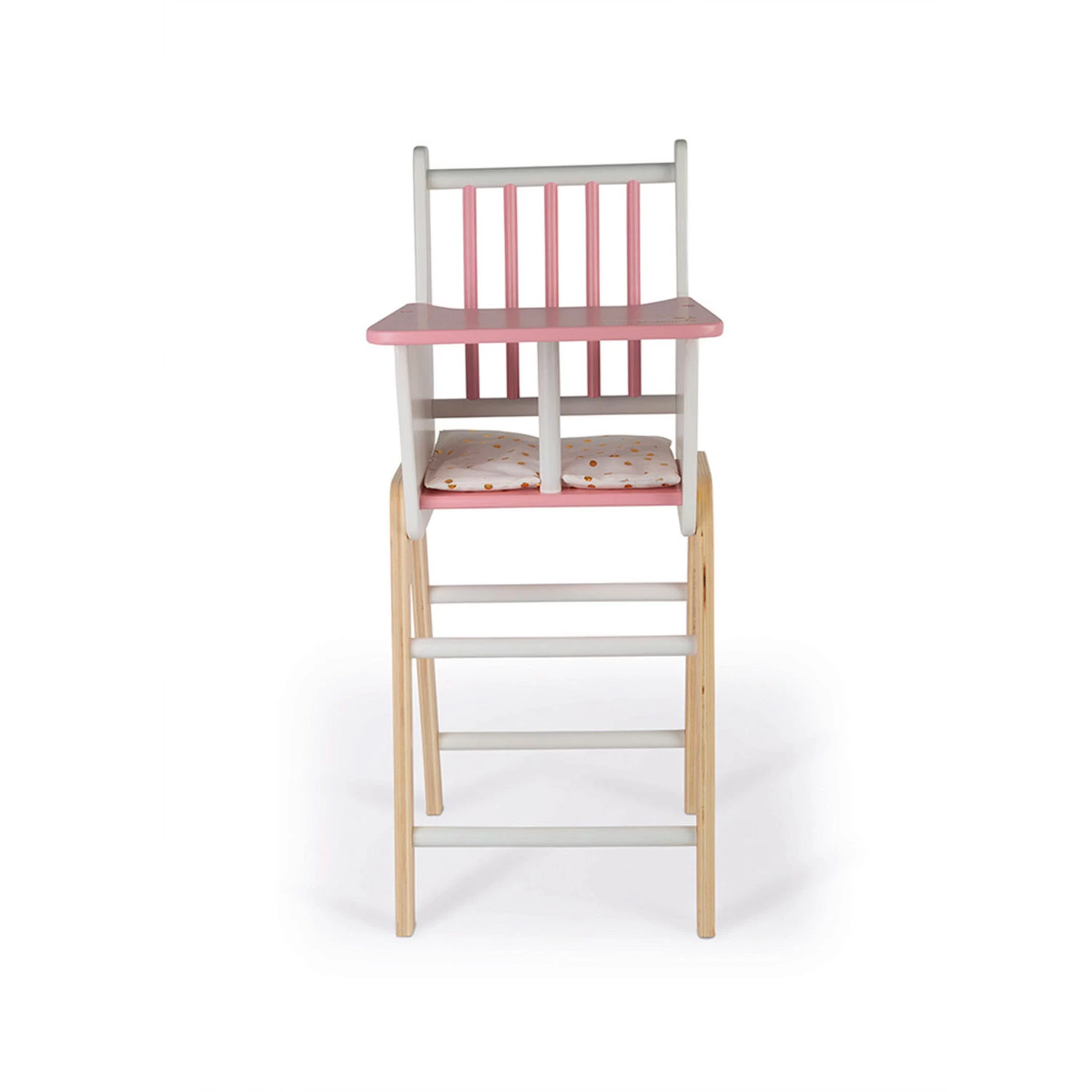 In diesem wunderschönen Puppenstuhl aus Holz von Janod fühlt sich jede Puppe wie eine Prinzessin. Der Puppenstuhl hat eine weiße Sitzfläche mit goldenen Punkten und ein rosa Tablett. Für den Sitzkomfort Ihres Babys gibt es im Stuhl auch ein weißes Kissen mit goldenen Punkten. Der Stuhl ist ideal zum Füttern von Mahlzeiten und zur Pflege Ihrer Puppe! Der Hochstuhl ist für Puppen bis 42 Zentimeter geeignet. Ohne Puppe und Zubehör.