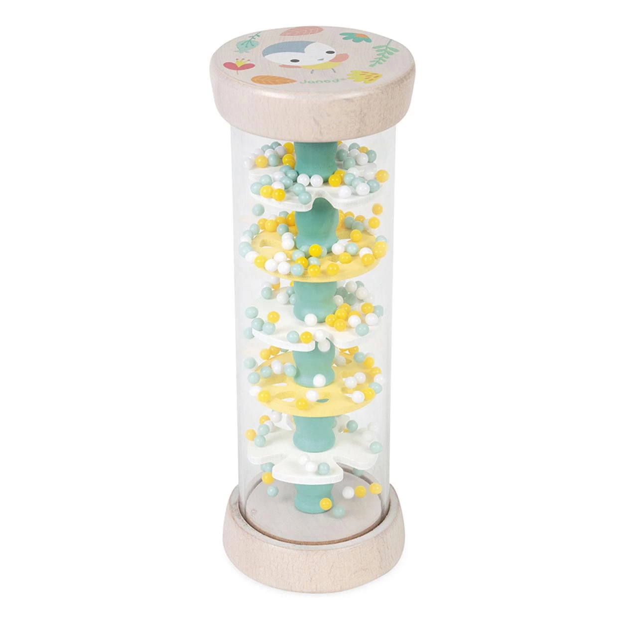 Drehen Sie diesen fröhlichen Regenmacher um und beobachten Sie, wie die Perlen sanft herunterrollen. Was für ein schöner Klang!