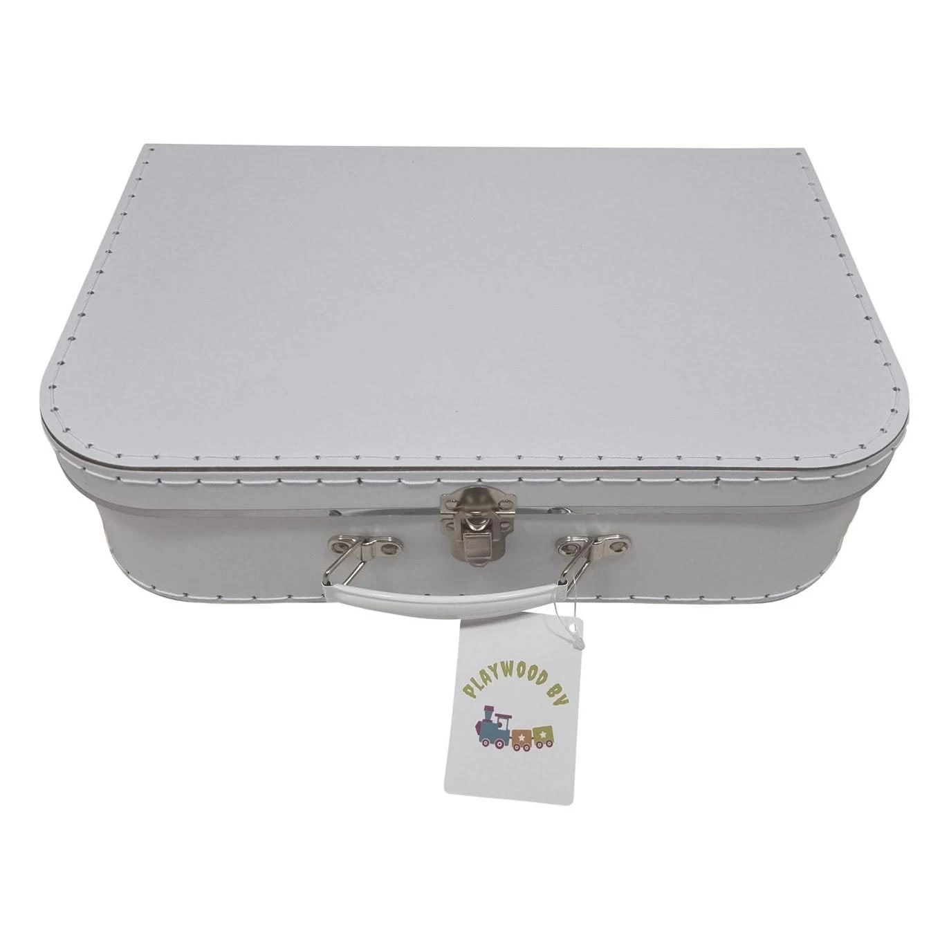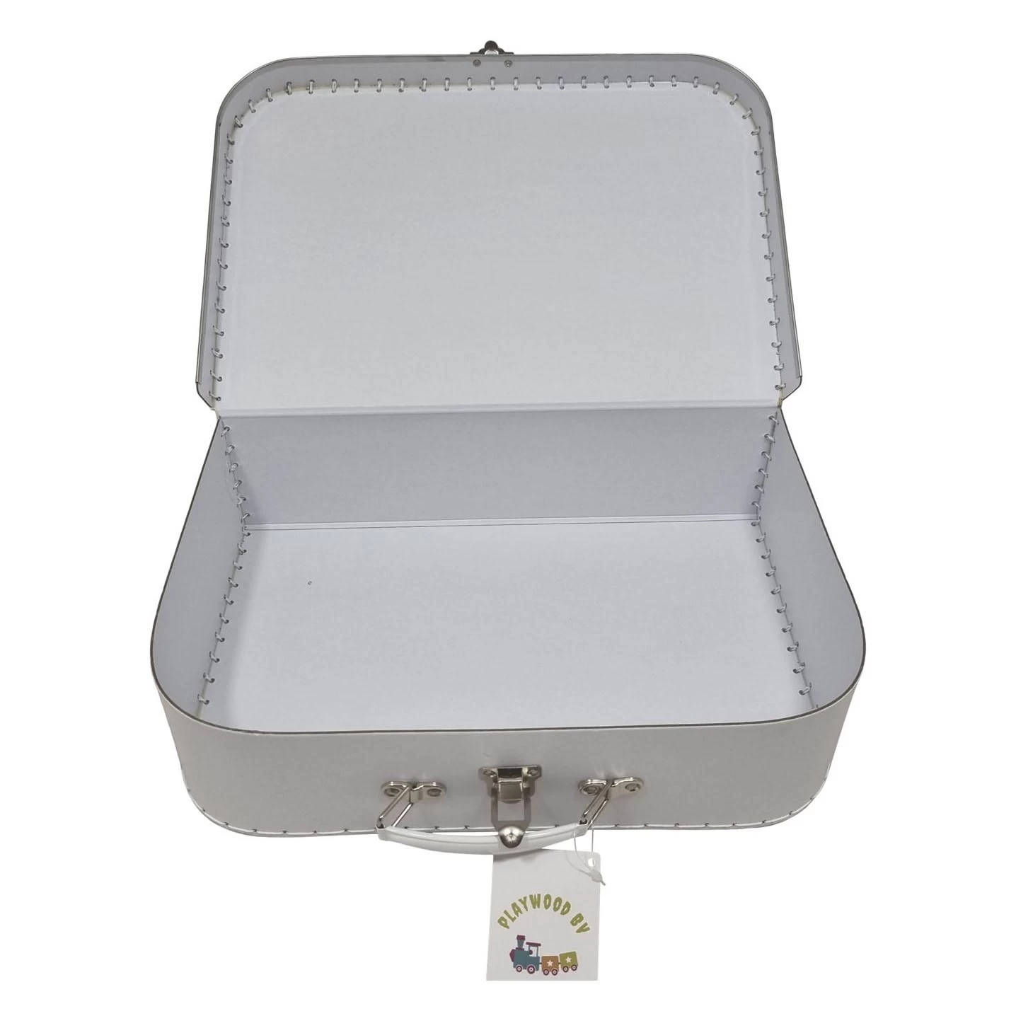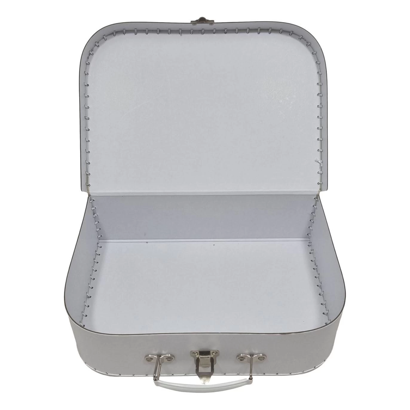 Set aus drei weißen Kartonkoffern. Verwenden Sie sie zum Aufbewahren von Spielzeug oder für ein lustiges Bastelprojekt! Da die Koffer weiß sind und aus Pappe bestehen, können Sie mit den unterschiedlichsten Materialien arbeiten. Das Set besteht aus drei Koffern in unterschiedlichen Größen: