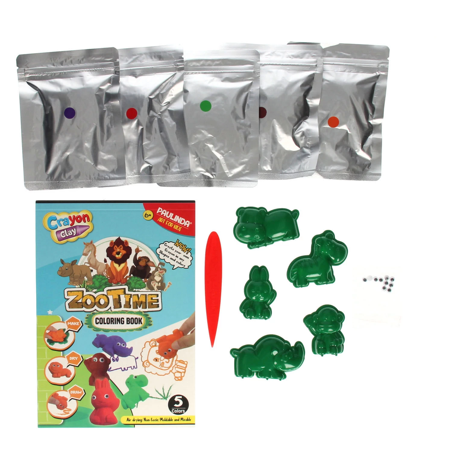 Mit dieser originellen Bastelbox können Sie Ihre eigenen Tiermalstifte herstellen! Wählen Sie eine Farbe und Form und lassen Sie Ihrer Kreativität freien Lauf. Wie funktionieren diese DIY-Buntstifte? 1. Platzieren Sie den formbaren Buntstift in der gewünschten Tierform. 2. Kleben Sie die schönen Augen darauf und lassen Sie den Stift trocknen. 3. Bereit? Unterschreiben Sie einfach! Geschenkidee für kreative Kinder! Das Bastelset enthält Kreide in fünf Farben zum Selbermachen und verschiedene Tierformen. Hergestellt aus ungiftigen Materialien und für Kinder ab 6 Jahren geeignet.