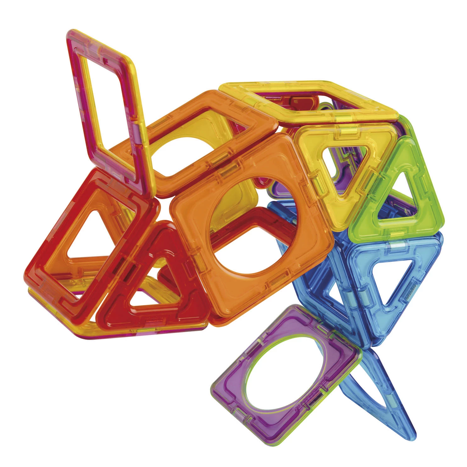 Wussten Sie, dass Magformers tatsächlich wahnsinniger Spaß ist, nur verpackt in einer Schachtel? Und dass das Spielen mit Magformers dich schlauer macht? Ja, denn diese magnetischen Bausteine sind MINT-Spielzeuge. Kurz gesagt, die ideale Kombination aus Bauspaß und Gehirntraining. Und auch die allerbeste Ausrede, stundenlang zu spielen. Zusätzlich zu den klassischen Magformers Bausteinen, die Sie auch in den Basic Sets finden, enthält dieses Magformers Basic Plus 30 Set eine zusätzliche geometrische Form. Ab jetzt arbeiten Sie auch mit Kreisen und Halbkreisen. So können Sie Ihre gestalterischen Fähigkeiten noch weiter ausbauen und mühelos noch mehr bewundernde Blicke auf sich ziehen. Denn glauben Sie uns: Wenn Sie die Kamera, das Schiff oder die Blockhütte aus dem beiliegenden Ideenheft gebaut haben, haben Sie es als zukünftiger Designer oder Ingenieur wirklich geschafft. Und weil Magformers so viel Spaß machen, werden Sie wahrscheinlich auch die 9 anderen Kreationen aus dem Buch im Handumdrehen herstellen.