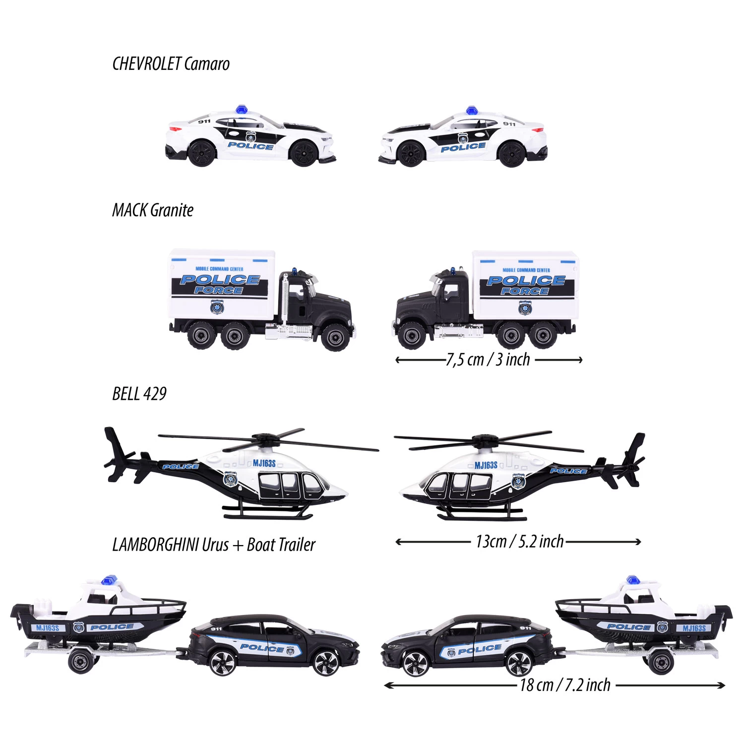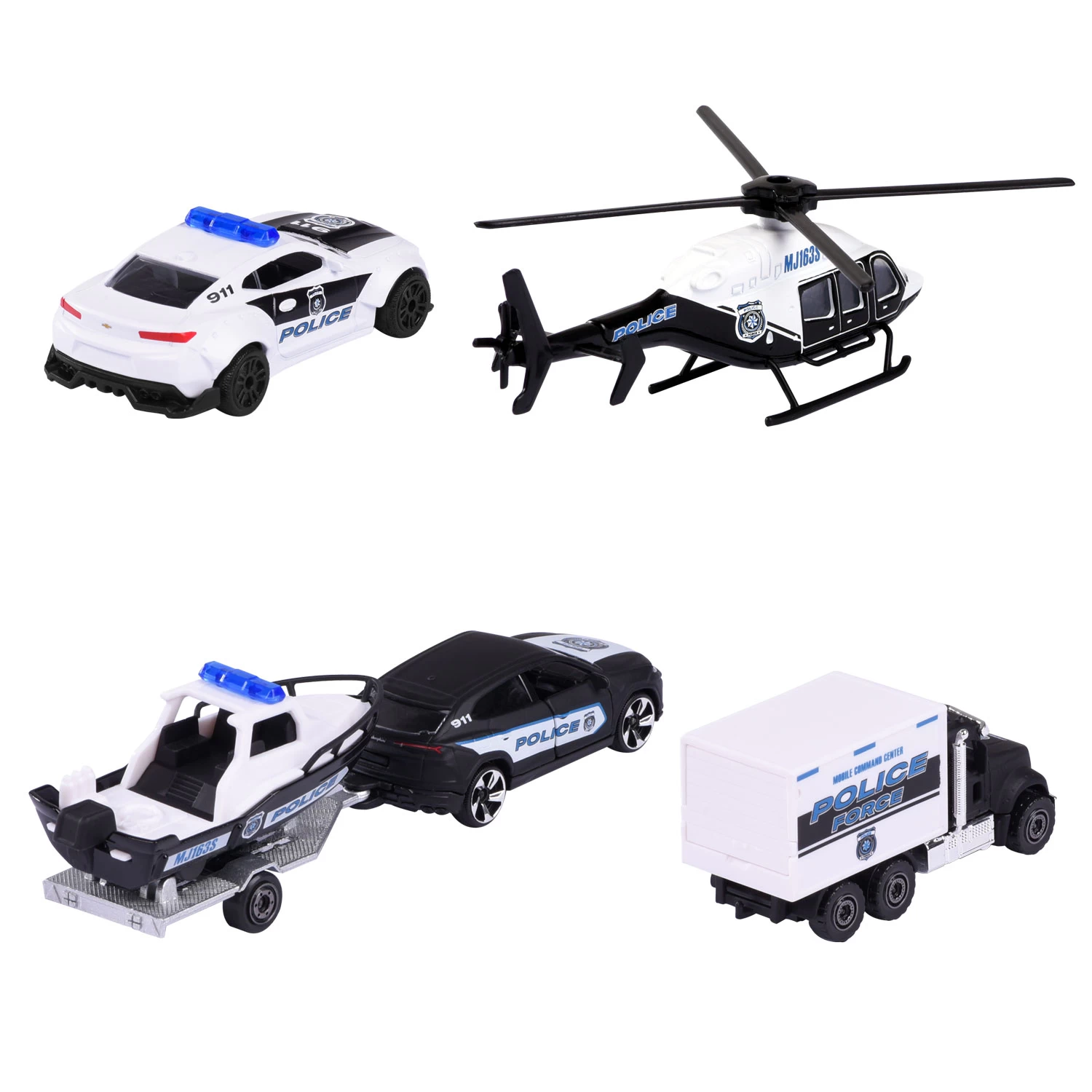 Dieses vierteilige Polizeispielzeugset enthält 4 Modelle: