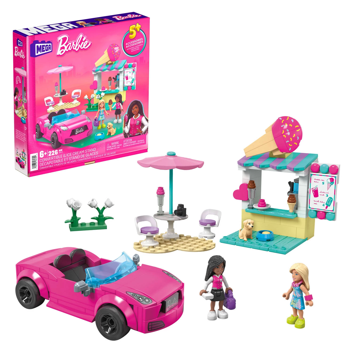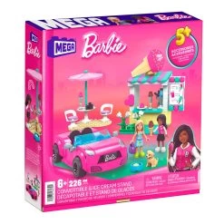 Kinder können ihre eigenen Geschichten erfinden, während sie einen Eisstand mit 2 Barbie Mikropuppen betreiben, die sie selbst zusammenbauen können. Sie bauen auch den Eisstand selbst, mit einer Eismaschine und verschiedenen Eissorten. Kinder können köstliche Eistüten zubereiten, die ihre Kunden auf den Sitzplätzen an der Promenade genießen können. Wenn es Zeit ist, den Stand zu schließen, steigen sie in das rosa Cabrio und machen sich stilvoll auf den Heimweg.