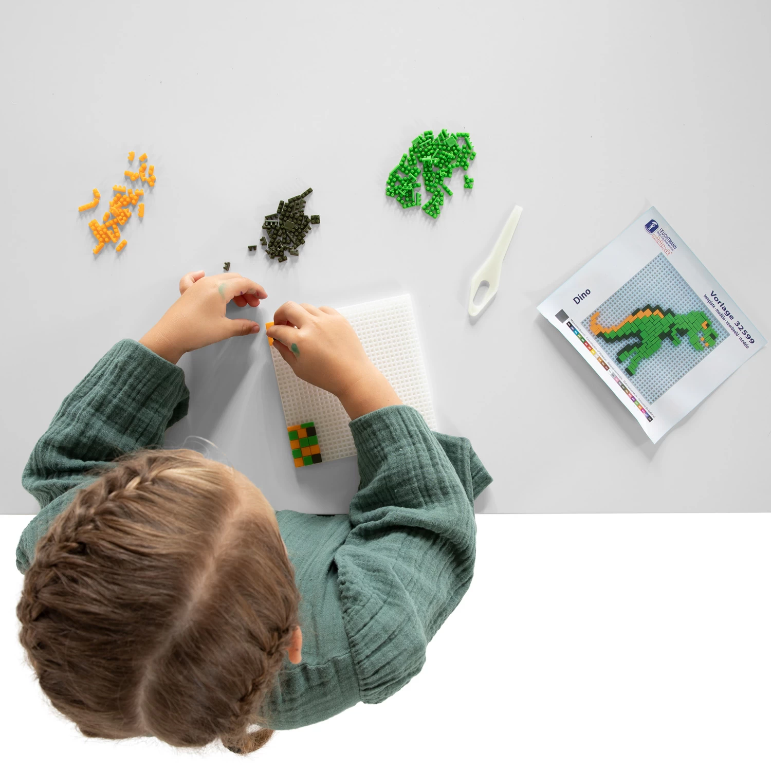 Dieses Ministeck Set enthält 200 farbige Steine, mit denen Sie ein cooles Bild eines Dinosauriers erstellen können. Der Dino sieht aus, als würde er gleich zum Leben erwachen! Das Spielen mit Ministeck ist gut für die Entwicklung von Konzentration, Feinmotorik und Kreativität. Die Steckplatine ist 13,3 x 13,3 cm groß. Geeignet für Kinder ab 4 Jahren.