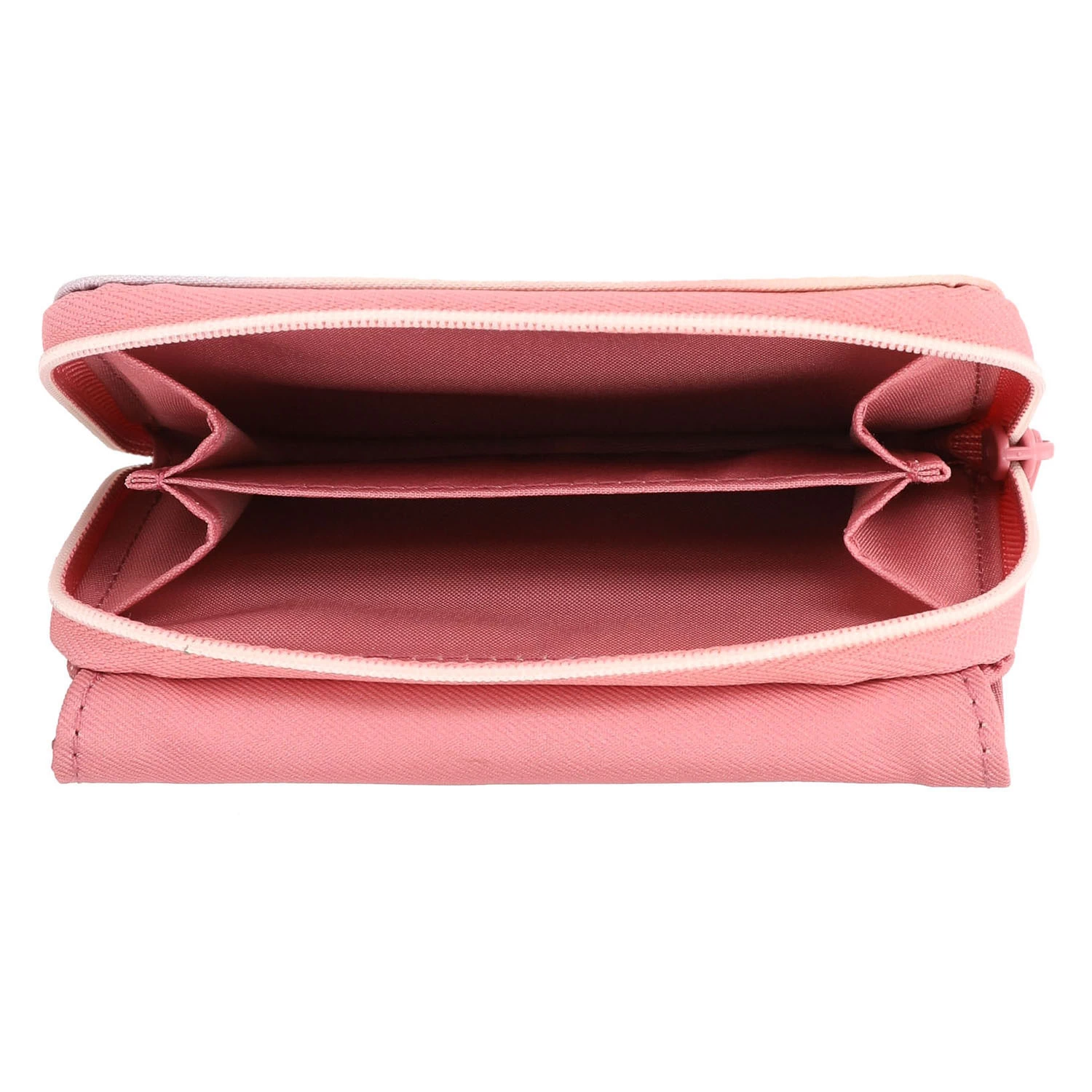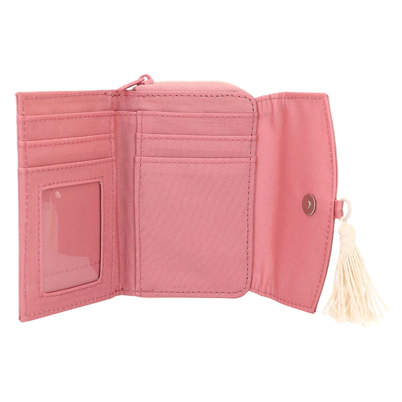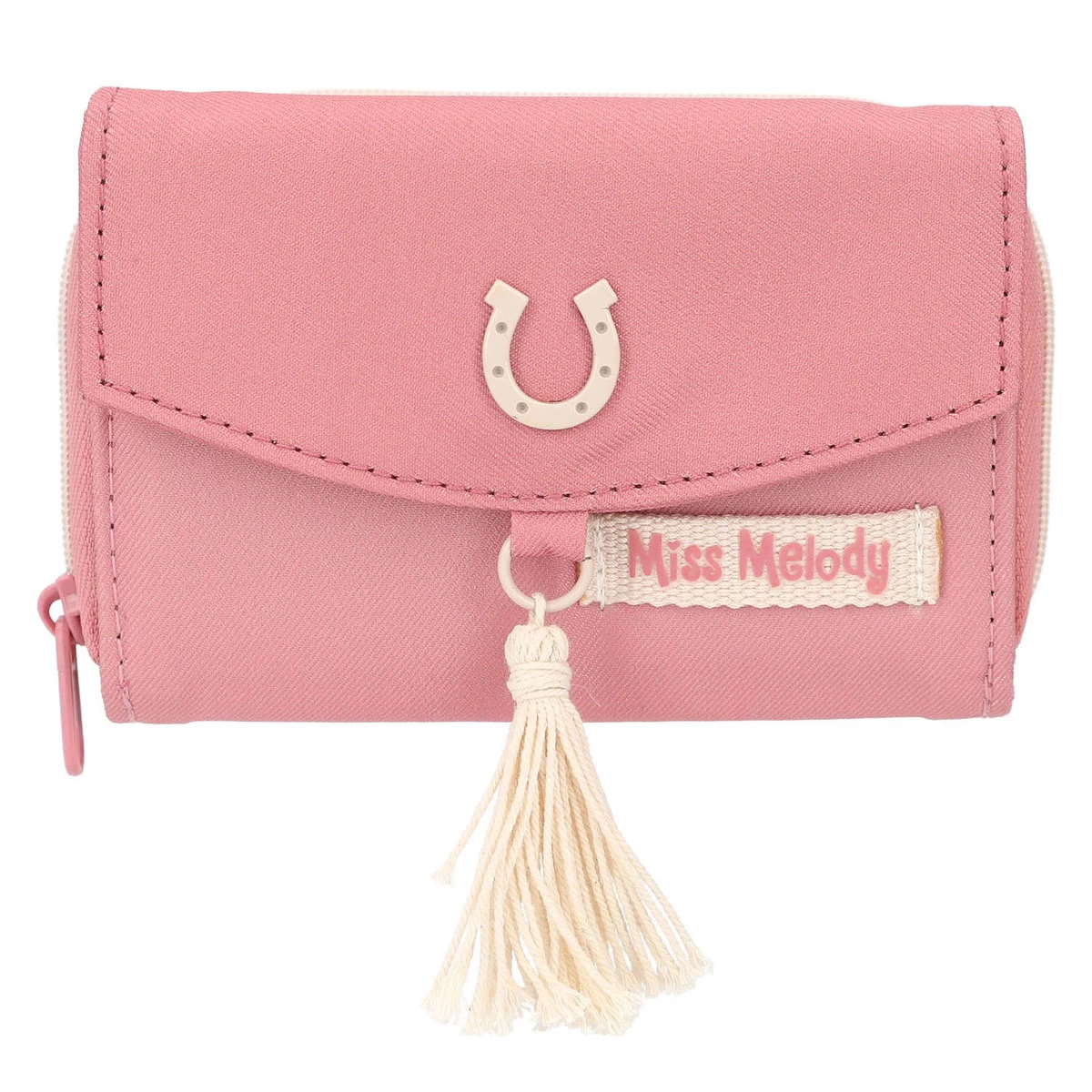 Harmonie auf Hufen: Das wunderschöne Portemonnaie von Miss Melody in Off-Pink hat auf der Vorderseite ein florales Pferdemotiv. Mit gestickten Hufeisen und geflochtener Kordel am Reißverschluss. Im Inneren ein Fach für Scheine und Münzen sowie diverse Fächer für Karten und eine Namenskarte mit Klarsichtfenster. Material: 100 Prozent Polyester.