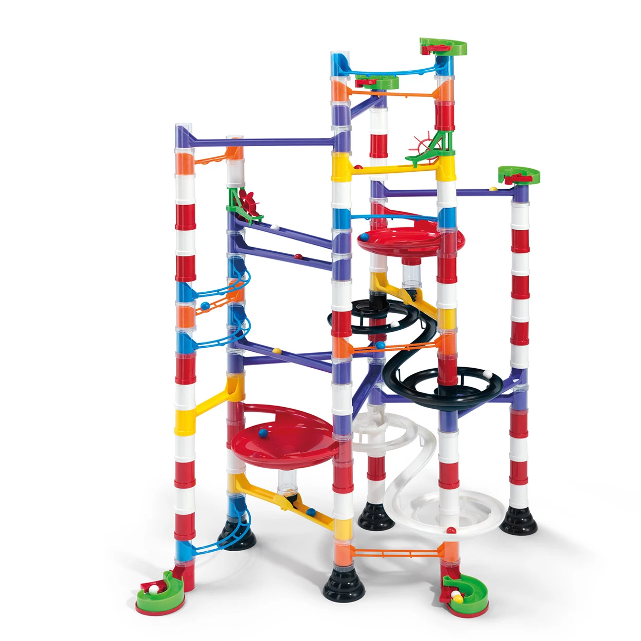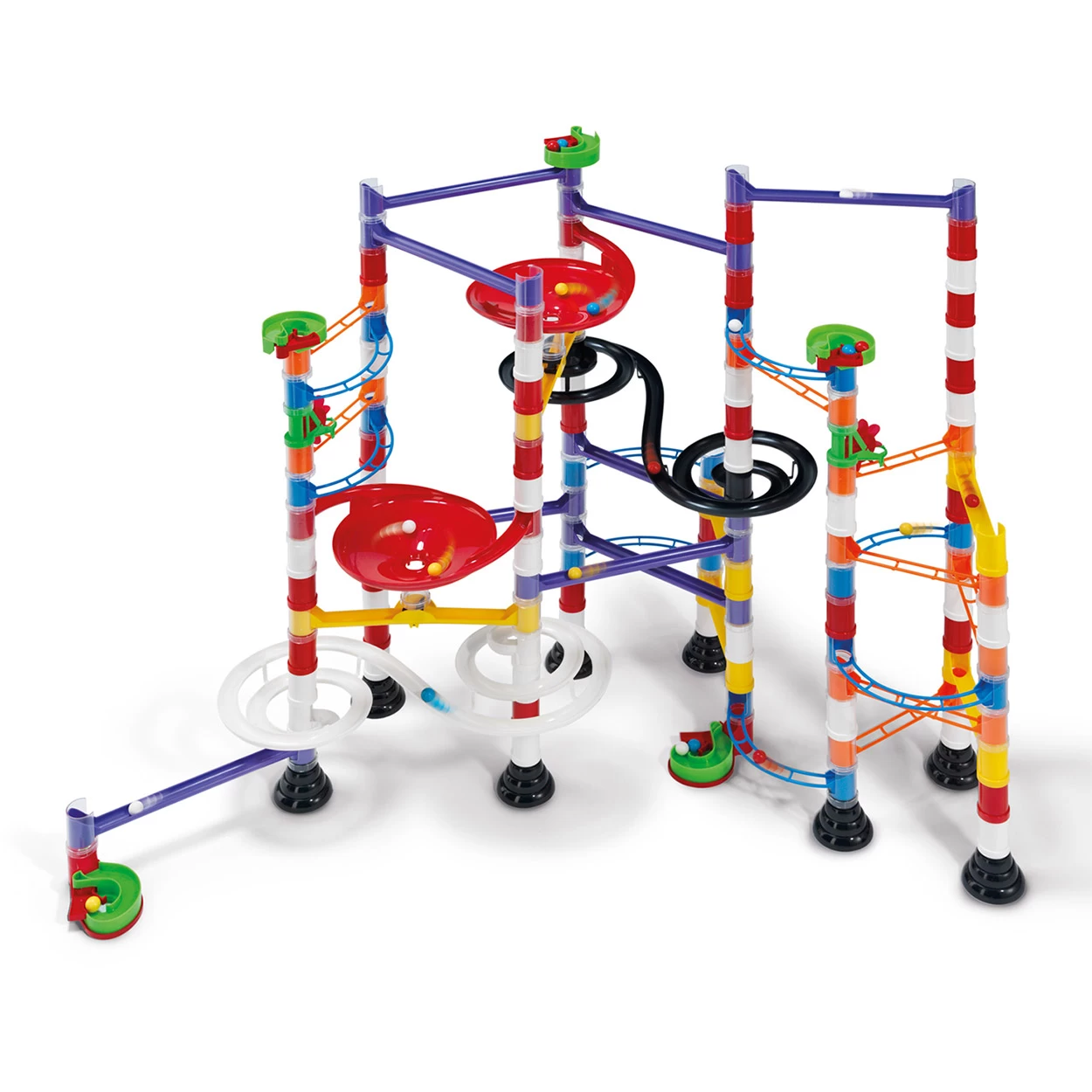 Erstellen Sie mit diesem kompletten Quercetti Migoga Maxi-Kugelbahnset eine herausfordernde Kugelbahn. Erstellen Sie die Beispiele oder erstellen Sie Ihr eigenes Design. Mit den 213 verschiedenen Teilen können Sie jedes Mal einen einzigartigen Track erstellen. Inklusive Bedienungsanleitung und Murmeln.
