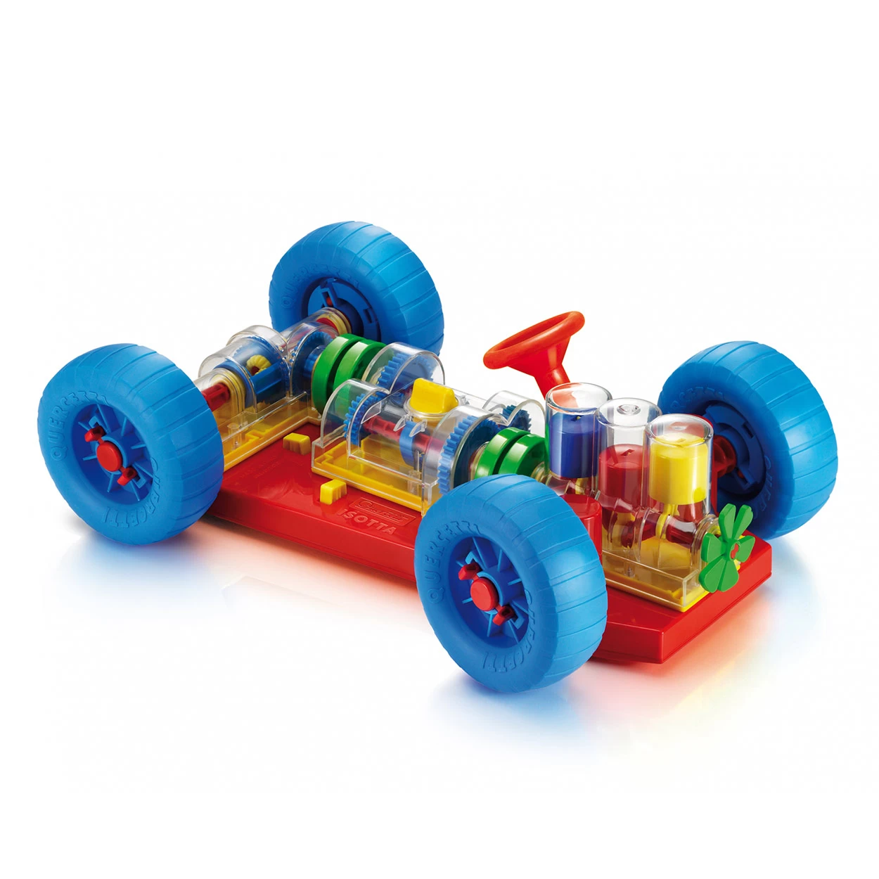 Das Quercetti Auto ist ein transparentes Auto für technikbegeisterte Kinder. Das Auto besteht aus 9 großen Teilen, die in der richtigen Reihenfolge am Rahmen montiert werden müssen. Danach muss das Auto manuell gestartet werden, indem das Auto vorwärts oder rückwärts geschoben wird. Anschließend wird Ihnen gezeigt, wie dieses Auto funktioniert, einschließlich der Bewegung der Kolben, Pleuel und Zahnräder. Geeignet für Kinder ab 3 Jahren.