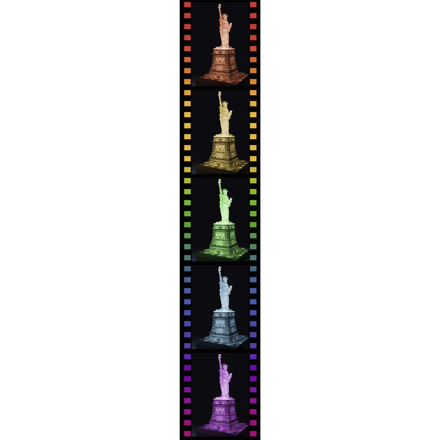 Basteln Sie aus stabilen Kunststoff-Puzzleteilen ein faszinierendes Modell der Freiheitsstatue bei Nacht und lassen Sie es mit LEDs erstrahlen. Sie können zwischen sanfter weißer Beleuchtung oder der Variante mit wechselnden Farben wählen.