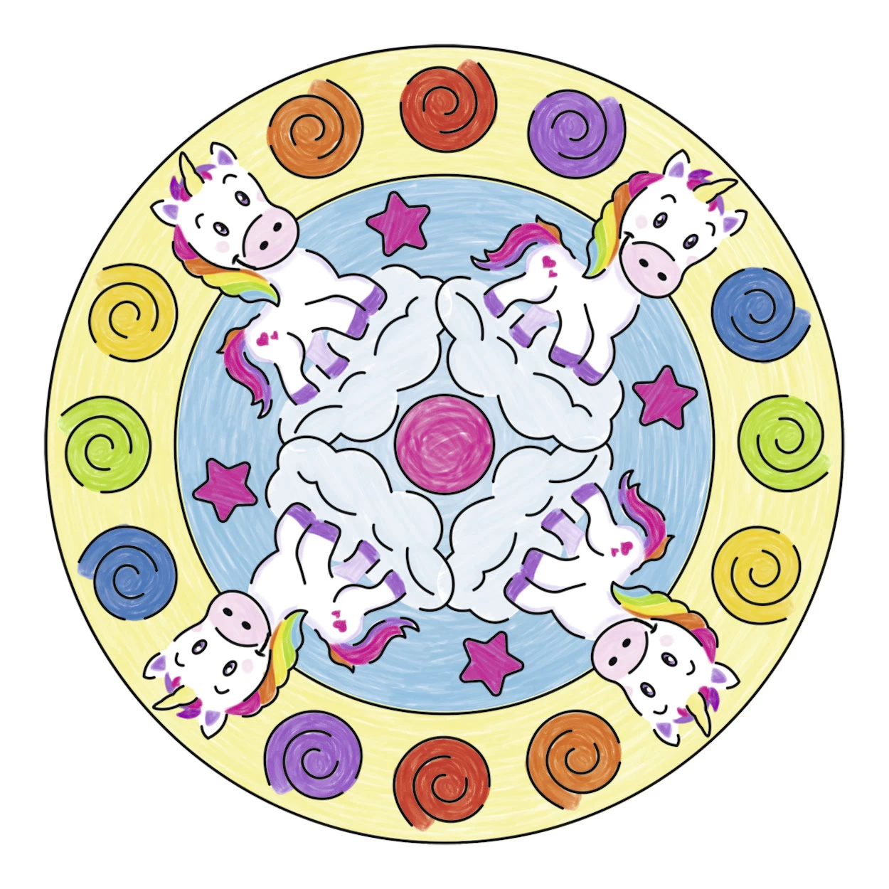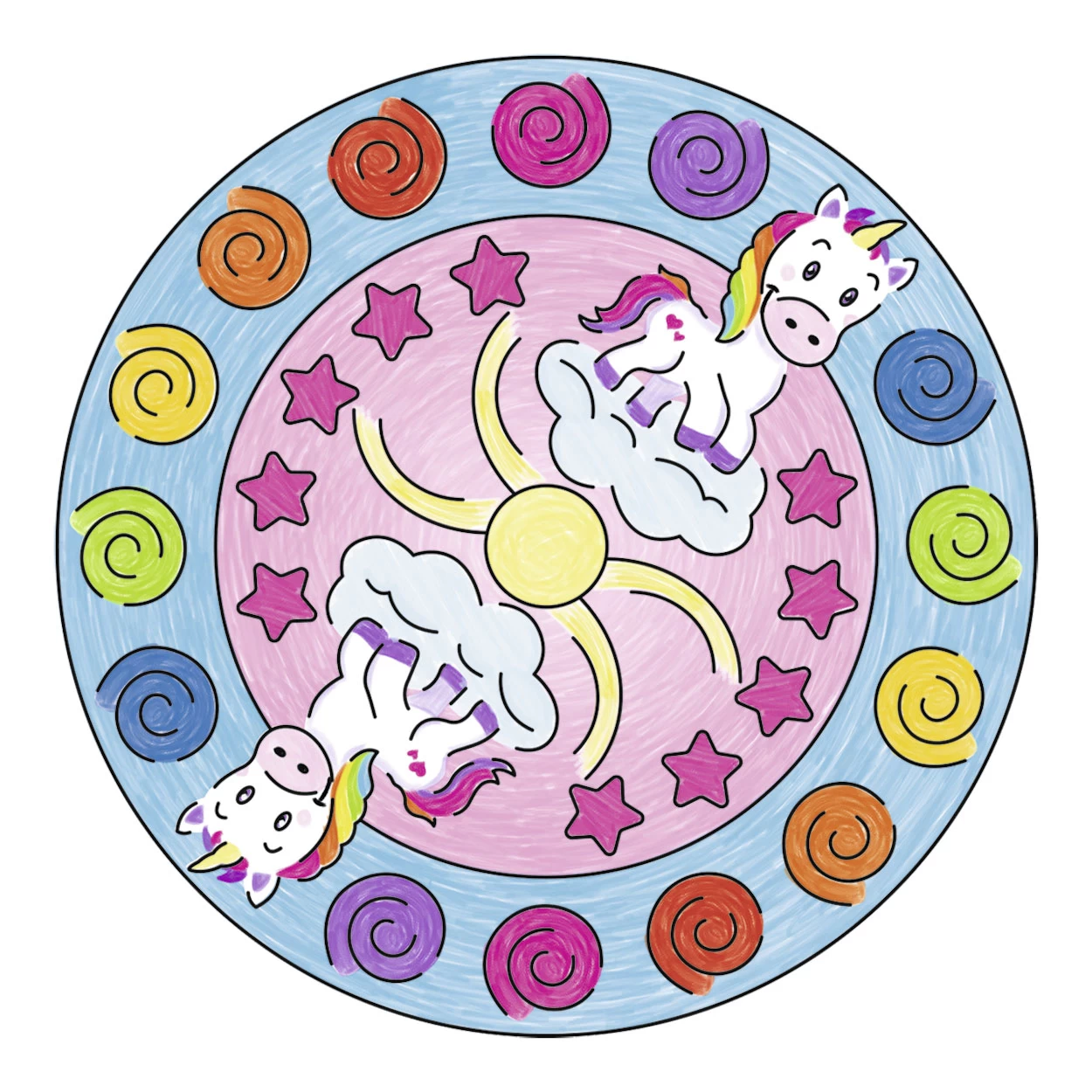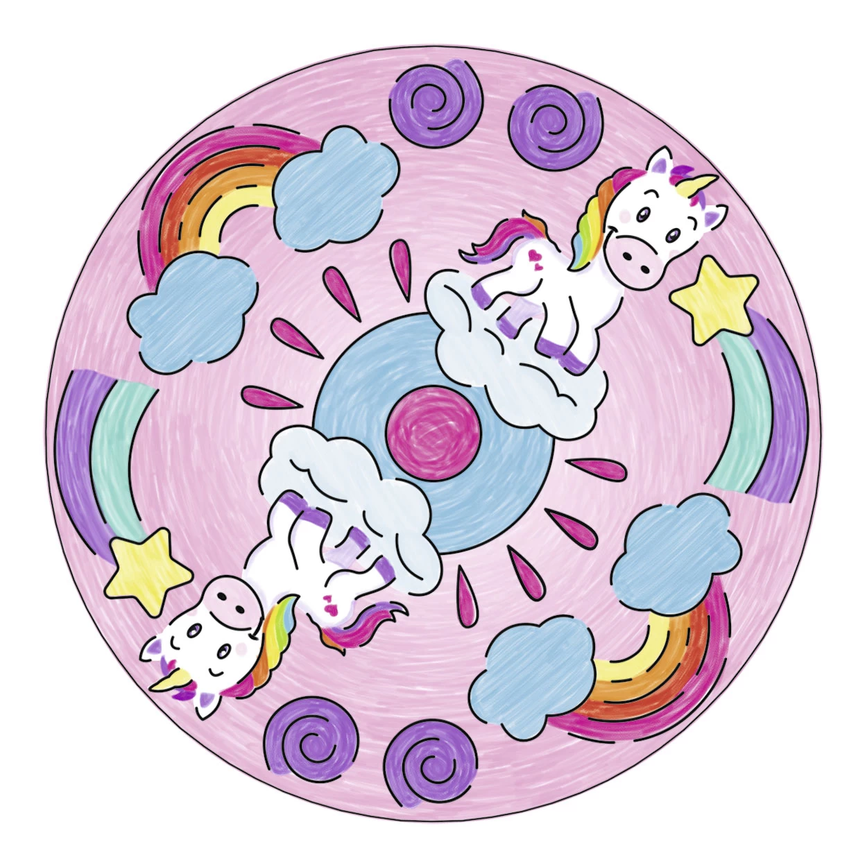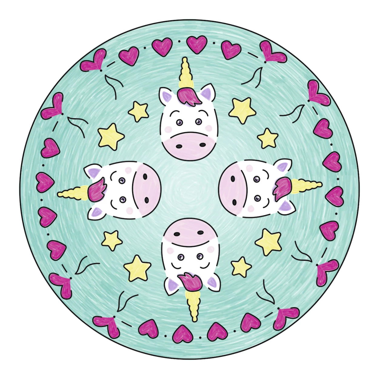 Der Ravensburger Mandala Designer für unterwegs! Mit dem Mandala-Designer Einhorn im Mini-Format gestalten Sie unterwegs die schönsten Mini-Mandalas. Einfach das Papier einlegen und die Schablone von Pfeil zu Pfeil drehen. Zum Schluss malen Sie Ihr Mandala schön aus und fertig ist Ihr selbstgestaltetes Mandala! Das Set enthält 1 Rahmen, Mandala-Vorlage, 10 Blatt Papier, 1 Filzstift, 3 Buntstifte und die Anleitung.