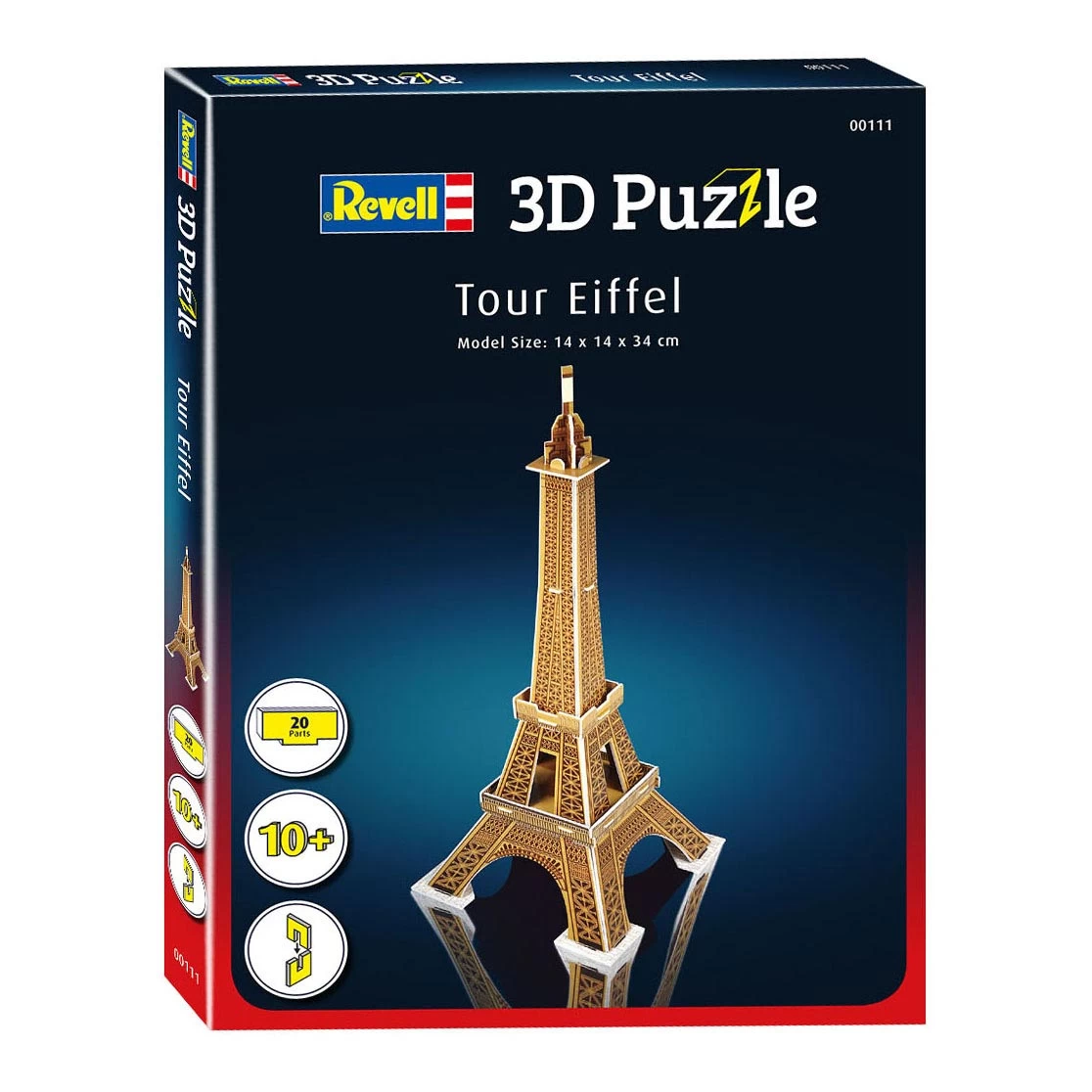 Der Eiffelturm in Paris wurde ursprünglich 1889 für die Weltausstellung erbaut und war als Symbol moderner Technologie gedacht. Bis heute ist es mit 320 Metern das höchste Gebäude der französischen Hauptstadt und eines der berühmtesten Bauwerke überhaupt. Bastelspaß für Groß und Klein! Mit den 3D-Puzzles von Revell lassen sich weltberühmte Gebäude, imposante Skylines oder legendäre Fahrzeuge als dreidimensionale Modelle für jedermann zusammenbauen. Die präzisionsgestanzten Konstruktionsteile in Schaumstoff vereinfachen die Montage; es sind weder Kleber noch Werkzeuge erforderlich. Je nach Größe und Schwierigkeitsgrad des Modells dauert die Bastelarbeit einige Minuten oder mehrere Stunden.
