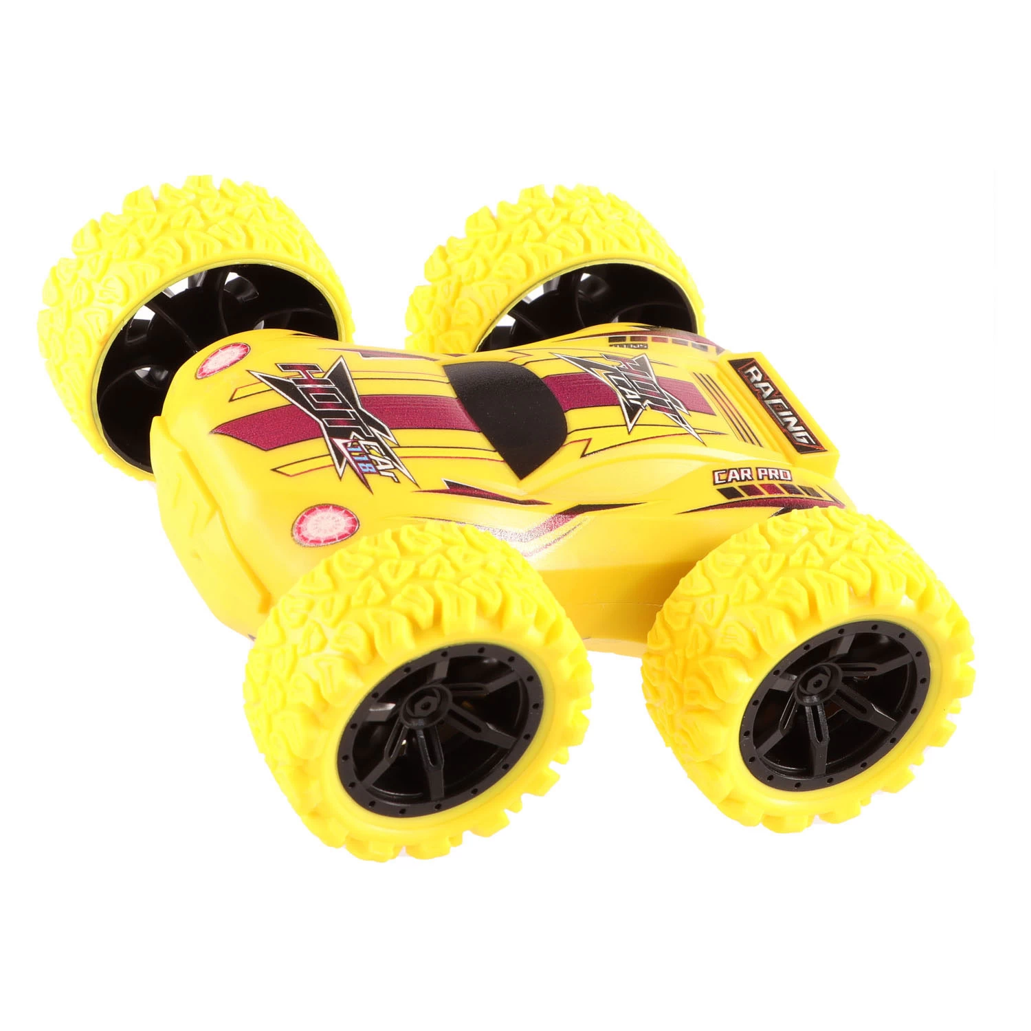 Dieses robuste Stuntauto kann dank seiner Reibräder mit Profilreifen selbstständig fahren. Er rast über den Boden! Und nicht nur das: Das Auto ist reversibel und kann sowohl kopfüber als auch vorwärts und rückwärts fahren. Hochgeschwindigkeits-Renn-Action mit coolen Stunt-Optionen. Vroom! Der Rennwagen ist 12 x 11,5 Zentimeter groß. Nicht für Kinder unter 3 Jahren geeignet. Preis pro Stück, verschiedene Designs / Farben werden gemischt.