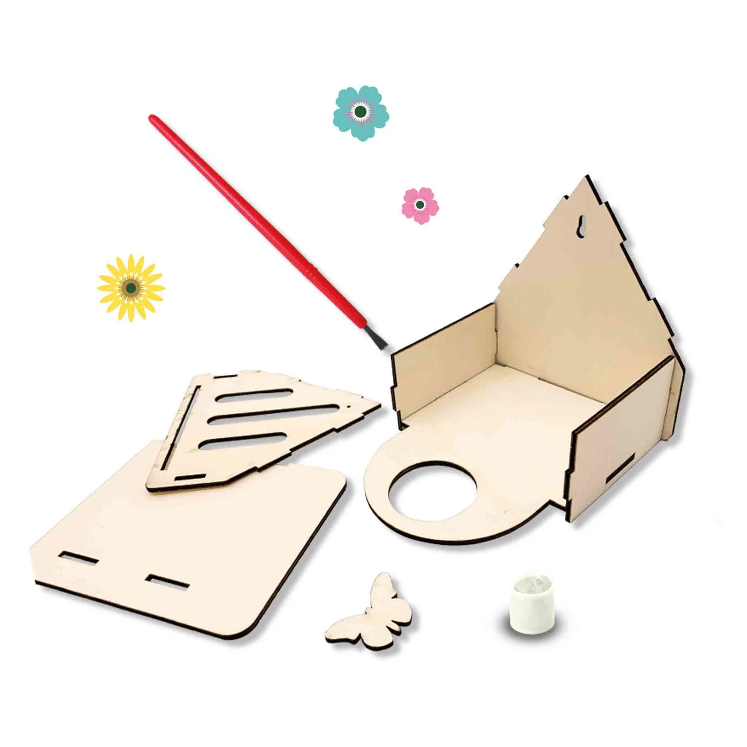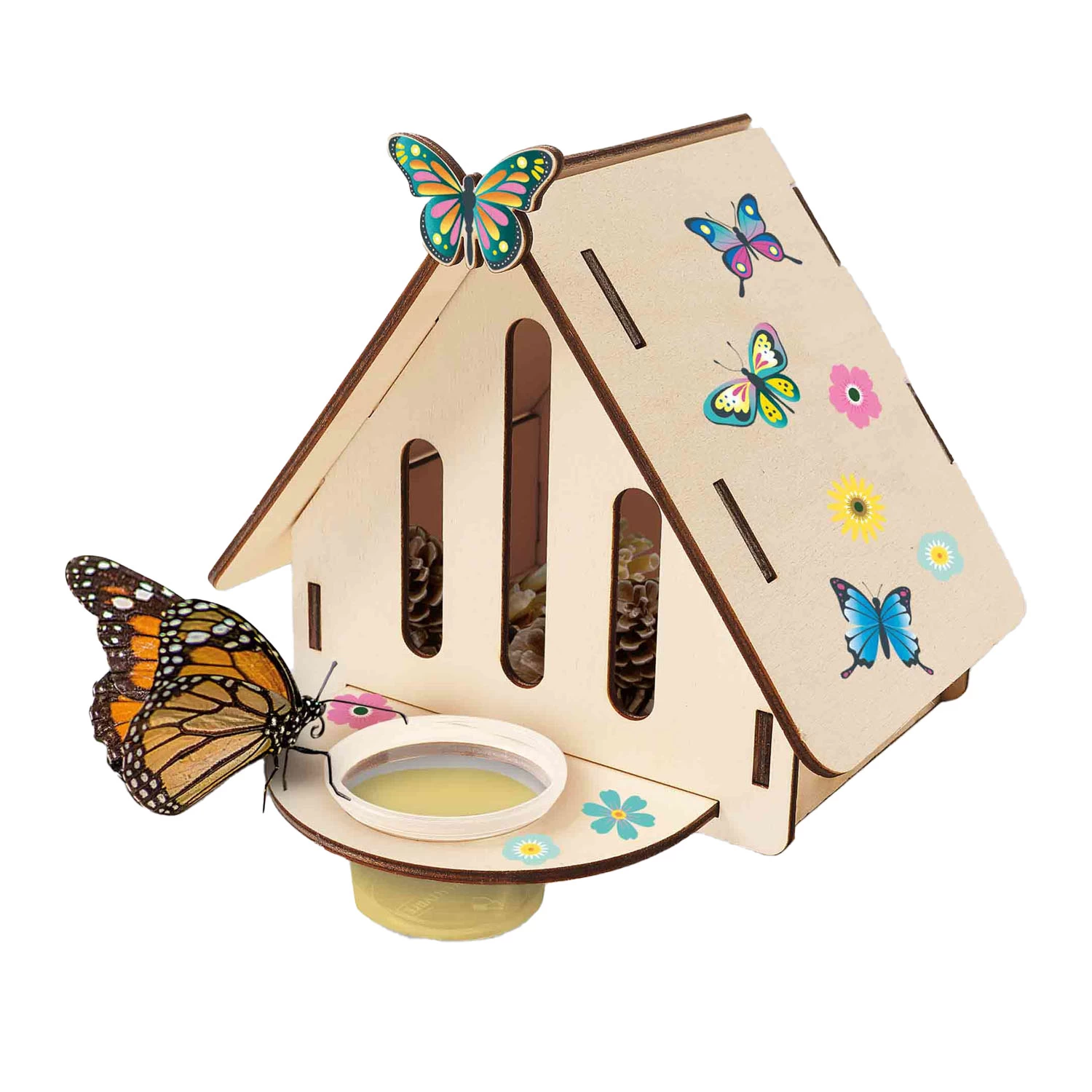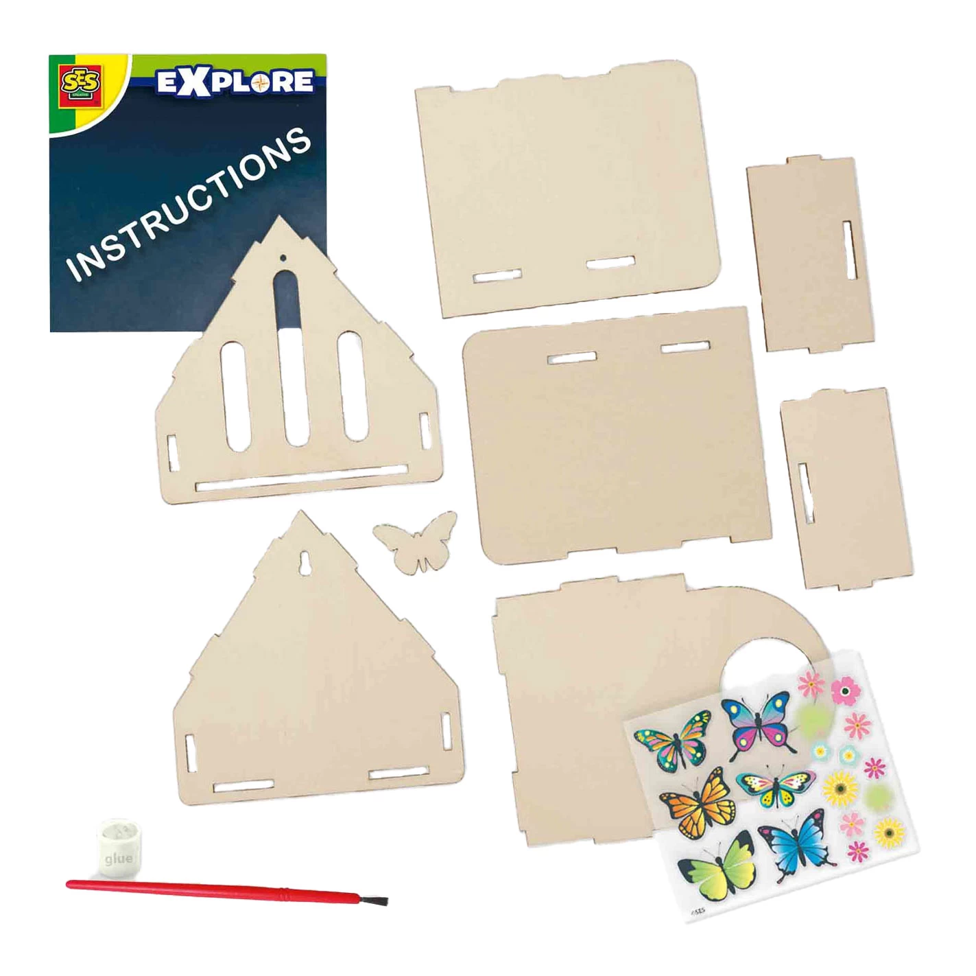 Es ist Zeit für mehr Schmetterlinge im Garten oder auf dem Balkon! Das Explore Schmetterlingshotel kann von Kindern selbst gebaut und mit Schmetterlingsaufklebern dekoriert werden. Diese MINT-Spielzeuge machen nicht nur Spaß, sondern sind auch sehr lehrreich. Bauen Sie Schritt für Schritt das Schmetterlingshotel aus Holz und füllen Sie es anschließend mit Naturmaterialien, die Sie draußen gefunden haben. So schaffen Sie einen geschützten Platz für die Schmetterlinge! Gießen Sie Zuckerwasser in die Schüssel und warten Sie, bis die schönsten Schmetterlinge im selbstgebauten Schmetterlingshotel ankommen! Eigenschaften • Schmetterlingshotel aus Holz zum selbstständigen Zusammenbauen • Weckt das Interesse an der Natur • Enthält fröhliche Schmetterlingsaufkleber • STEM-Spielset Inhalt • Kleber • Holzteile des Schmetterlingshotels • Behälter für Sirup • Pinsel • Blatt mit Schmetterlingsaufklebern • Anleitung Geeignet für Kinder ab 5 Jahren alt.