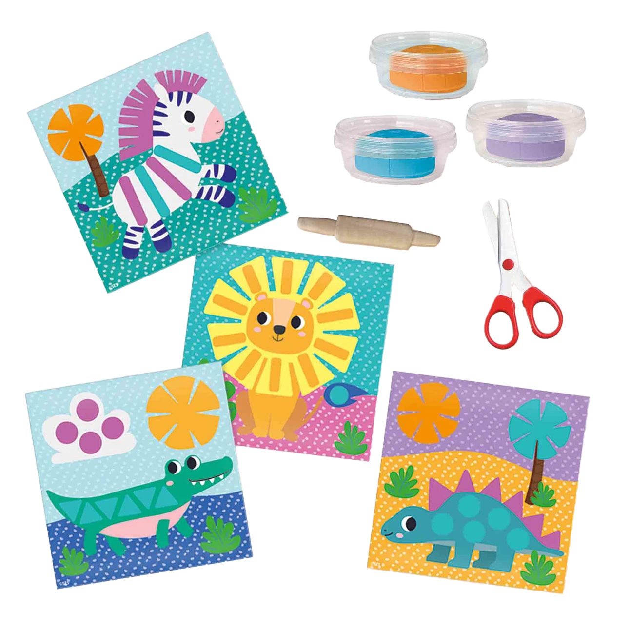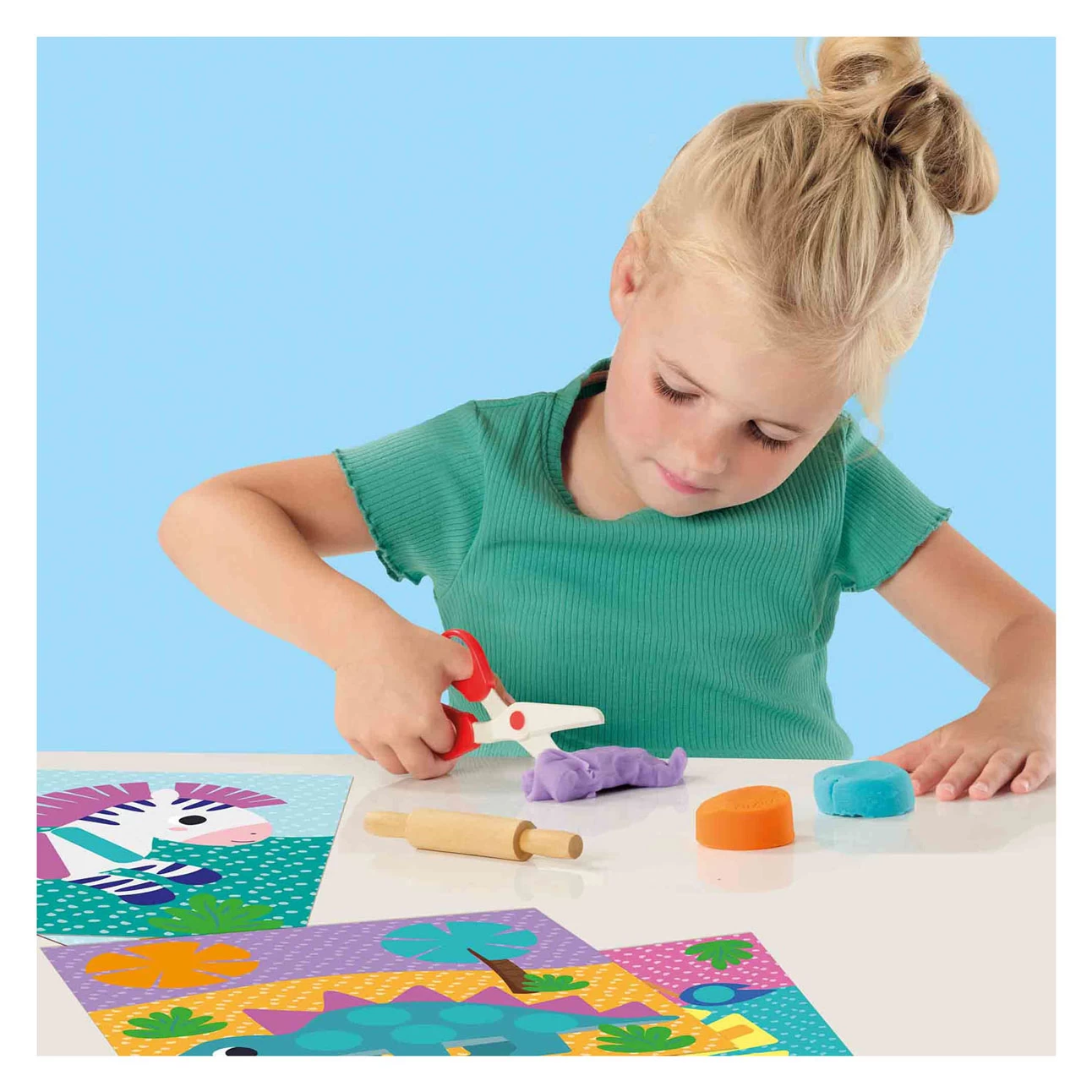Ton mit einer Schere schneiden? Ja, das ist durchaus möglich! Mit diesem Set von SES Creative lernen Kinder, verschiedene Formen auszuschneiden, um die 4 plastifizierten Karten auszufüllen. Zusätzlich zu den wiederverwendbaren Karten und den 3 Tonfarben enthält das Set daher die sichere Kinderschere. Diese Schere ist sicher für Haare, Finger und Textilien! Kinder können sicher selbst loslegen, ohne sich Sorgen um ihre Eltern machen zu müssen.