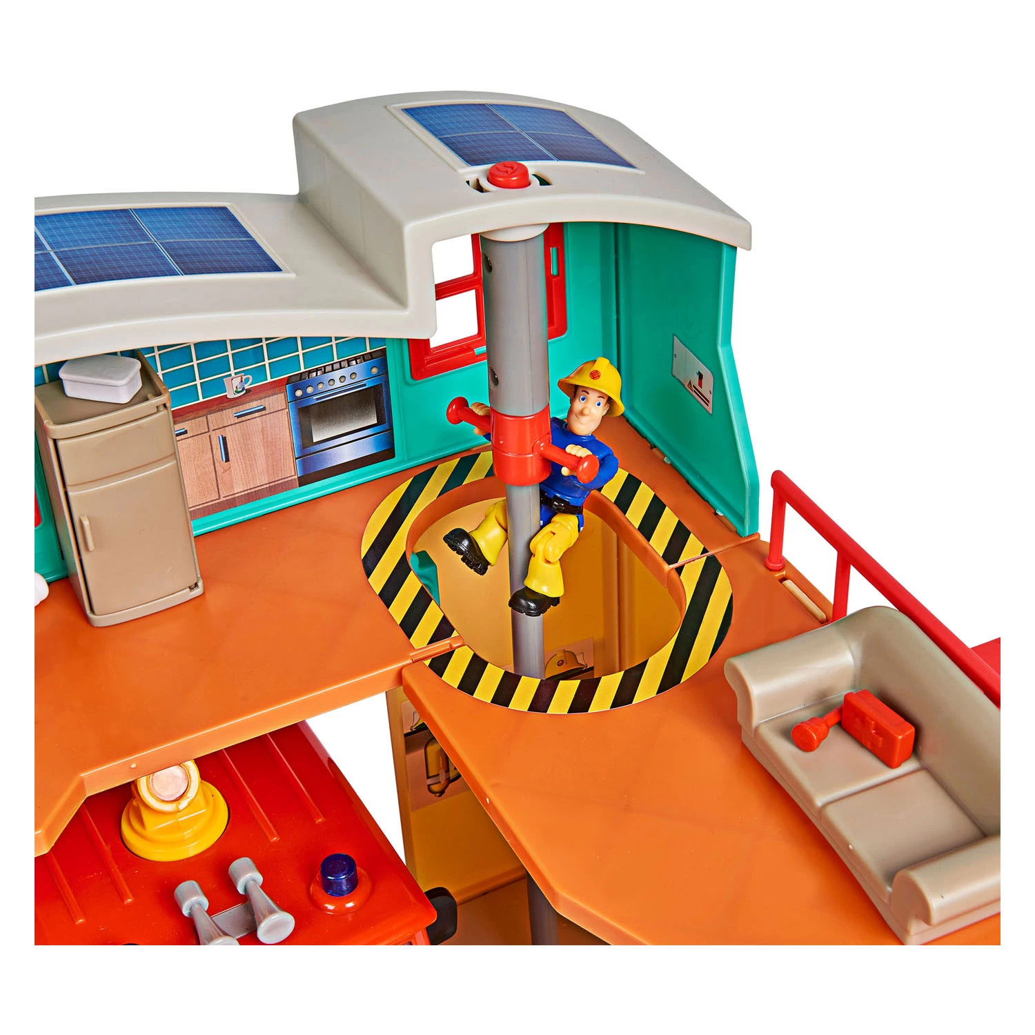 Diese Mega-Feuerwache von Feuerwehrmann Sam sorgt garantiert für endlosen Spaß und Action! In der Kaserne gibt es einen Lautsprecher, mit dem Kinder Sam zum Handeln aufrufen können. Das Feuerwehrauto „Jupiter“ kann durch die sich öffnenden Türen in die Station fahren und schnell die Drehscheibe einschalten, um durch die zweite Tür zu fahren und seinen nächsten Einsatz zu beginnen. Funktionsreiche Feuerwache Die Feuerwache verfügt außerdem über einen Rettungsturm, mit dem die mutigen Feuerwehrleute die Rettung von Menschen üben und sicherstellen, dass sie für den Einsatz fit sind. Sie können die Leiter hochklettern und sich abseilen oder die Seilrutsche zur angrenzenden Feuerwache nutzen. Die stärksten Feuerwehrleute nutzen die Kletterwand, die mit der Station und dem Turm verbunden ist. Damit alle Einsätze gut geplant und koordiniert werden können, verfügt die Kommandozentrale über Licht- und Tonfunktionen. Außerdem gibt es einen Helikopterlandeplatz für „Wallaby“ sowie einen batteriebetriebenen Aufzug für Helikopterpassagiere, um zur Feuerwache zu gelangen. Befinden sich die Feuerwehrleute bei einem Notruf im Erdgeschoss, können sie mit der Schiebestange ins Erdgeschoss gleiten und sich schnell zum Einsatz melden. Inhalt: Die Mega-Feuerwache „Feuerwehrmann Sam“ von Simba Toys verfügt über Licht- und Soundeffekte und wird mit einer Reihe von Zubehörteilen geliefert, darunter „Schnuffi“, der Hund, und eine Feuerwehrmann Sam Figur. Es ist für Kinder ab 3 Jahren konzipiert. Jupiter und Wallaby sind separat erhältlich. Im Lieferumfang sind 5x 1,5V R03 Batterien enthalten.