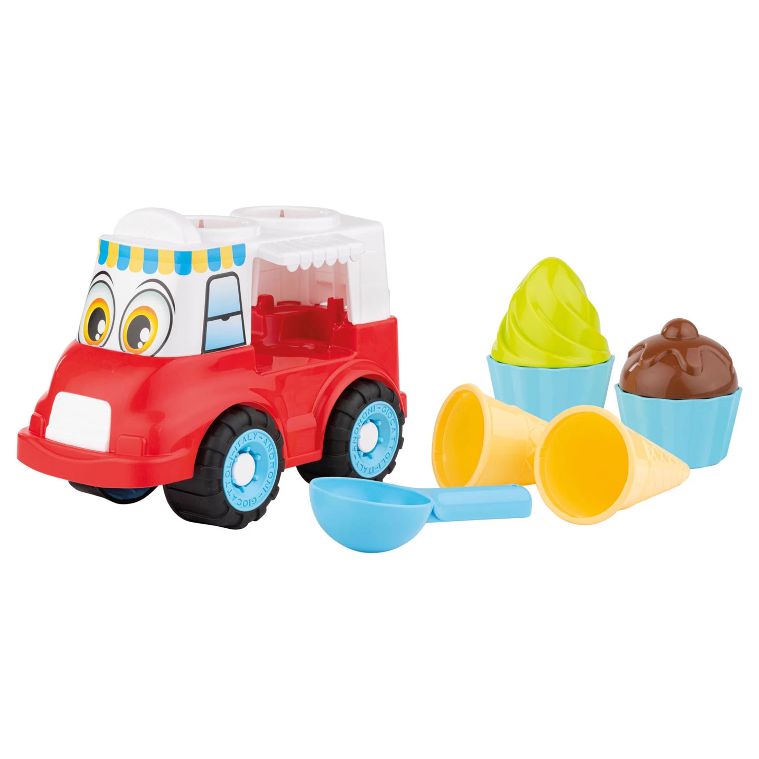 Machen Sie mit diesem roten Eiswagen die schönsten Eiscremes im Sandkasten! Der Eiswagen enthält 2 Waffeln, 4 Sandformen in Form von Eis und Cupcakes sowie einen Eisportionierer. Auf diese Weise können Sie aus Sand köstliche Eiscremes und Cupcakes für alle zubereiten und sich stundenlang im Sandkasten vergnügen! Aus Plastik hergestellt. Geeignet für Kinder von 3 bis 6 Jahren.