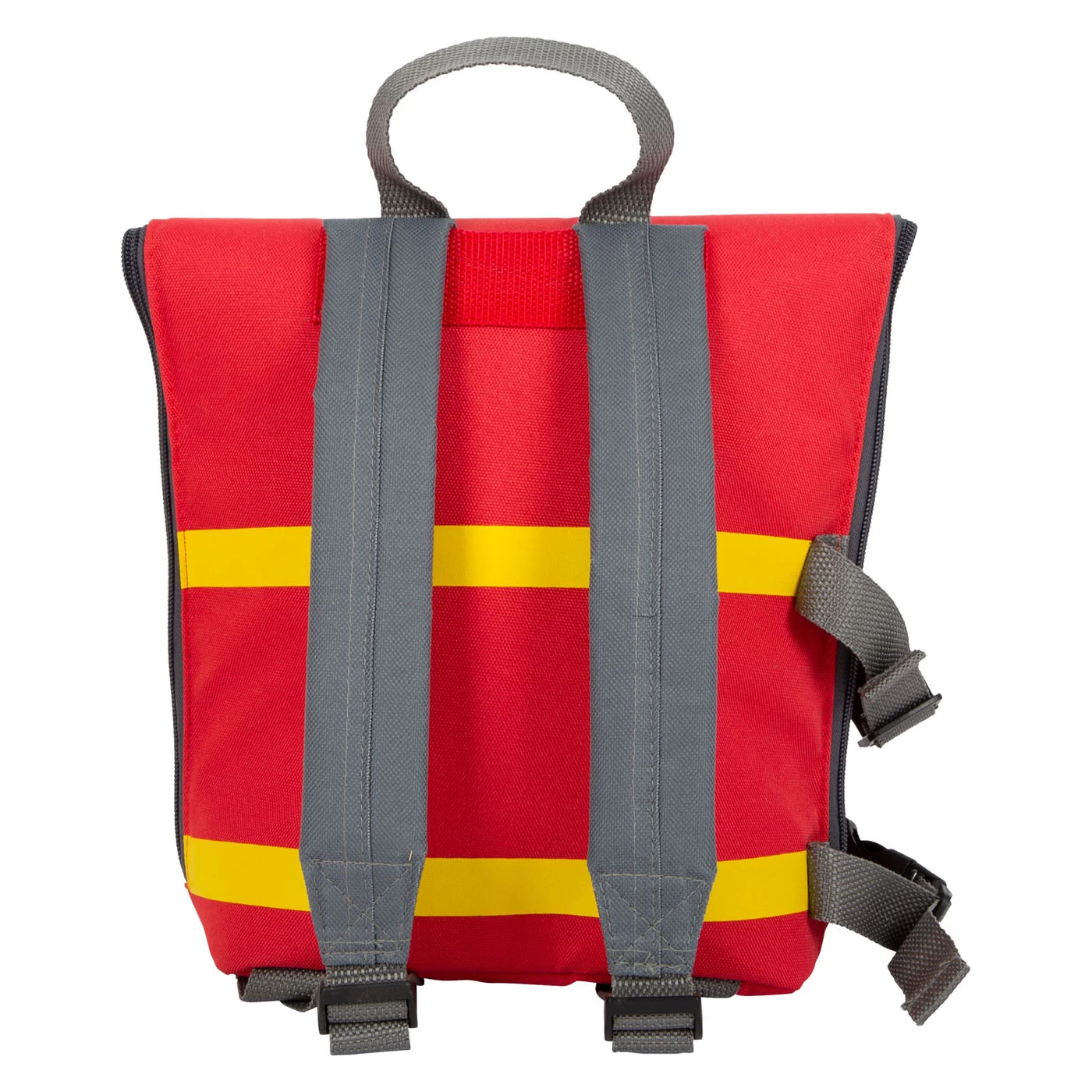Die Feuerwehr ist da! Mit diesem realistischen Feuerwehrrucksack in Notfallfarben mit verstellbaren Schultergurten sind junge Feuerwehrmänner immer vor Ort, wenn sie gebraucht werden. Durch die Doppelreißverschlüsse lässt sich der Rucksack weit öffnen und die gummierten Werkzeugfächer im Rucksack sorgen für Ordnung und schnellen Zugriff auf die Ausrüstung aus robustem Holz! Die beiden zusätzlichen Klickschnallen am Rucksack ermöglichen die Befestigung von zusätzlichem Zubehör. Ein absolutes Highlight ist der Feuerwehrschlauch! Kinder lieben es, in die Rolle ihrer alltäglichen Helden und Heldinnen zu schlüpfen!