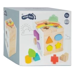 Dieser moderne, formbeständige Formensortierer aus robustem Holz vereint schlichtes Weiß, leuchtende Regenbogenfarben und deutlich sichtbare Massivholzelemente. Die 13 unterschiedlich geformten und farbigen Elemente schulen das Farb- und Formenerkennen und die motorischen Fähigkeiten der Kinder. Neben den klassischen geometrischen Formen gibt es auch Figuren aus Wolken, Sternen und Häusern!