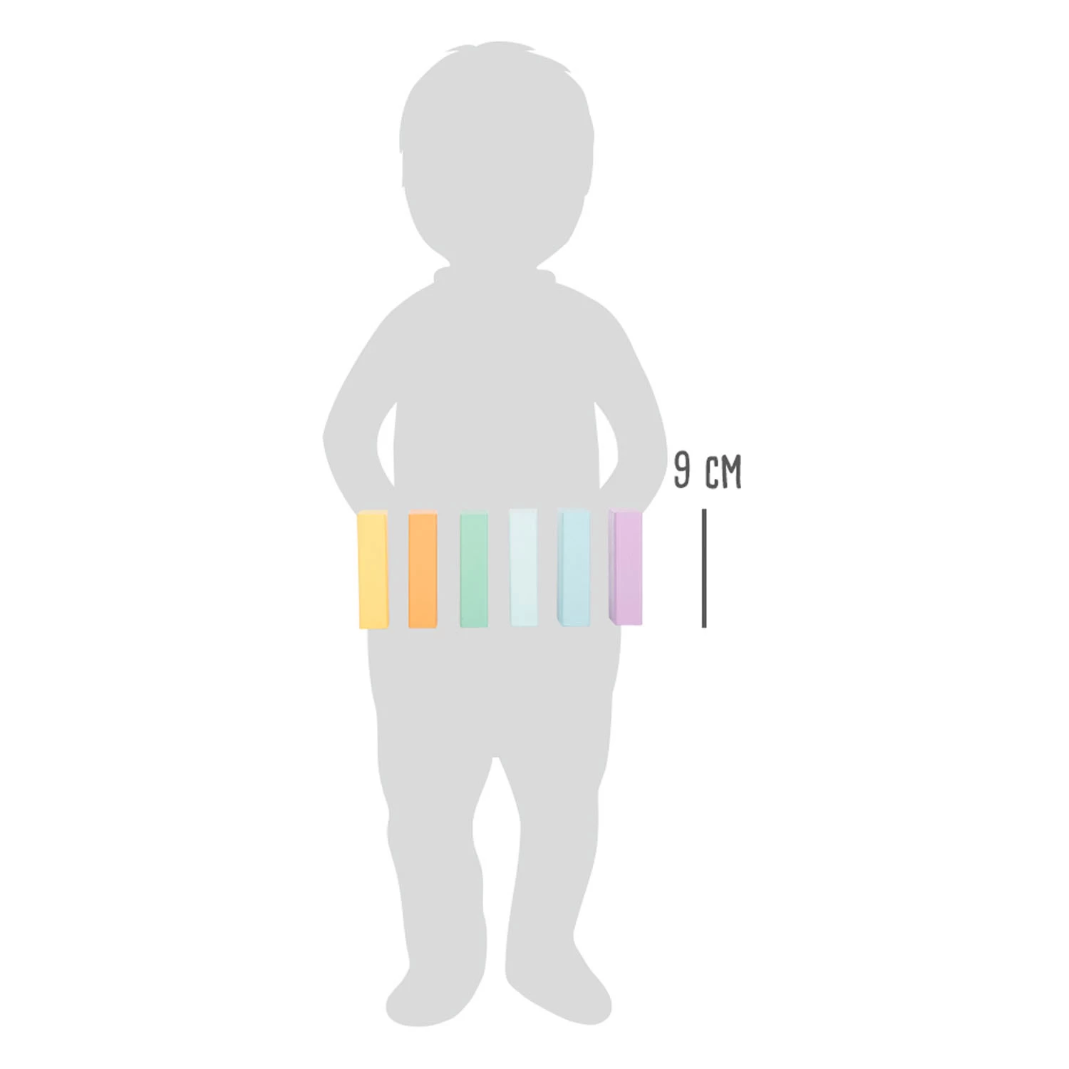 Maße: Blöcke ca. 3 x 3 x 3 cm; Rechteck ca. 9 x 3 x 1,5 cm. Geeignet für Kinder ab 12 Monaten.